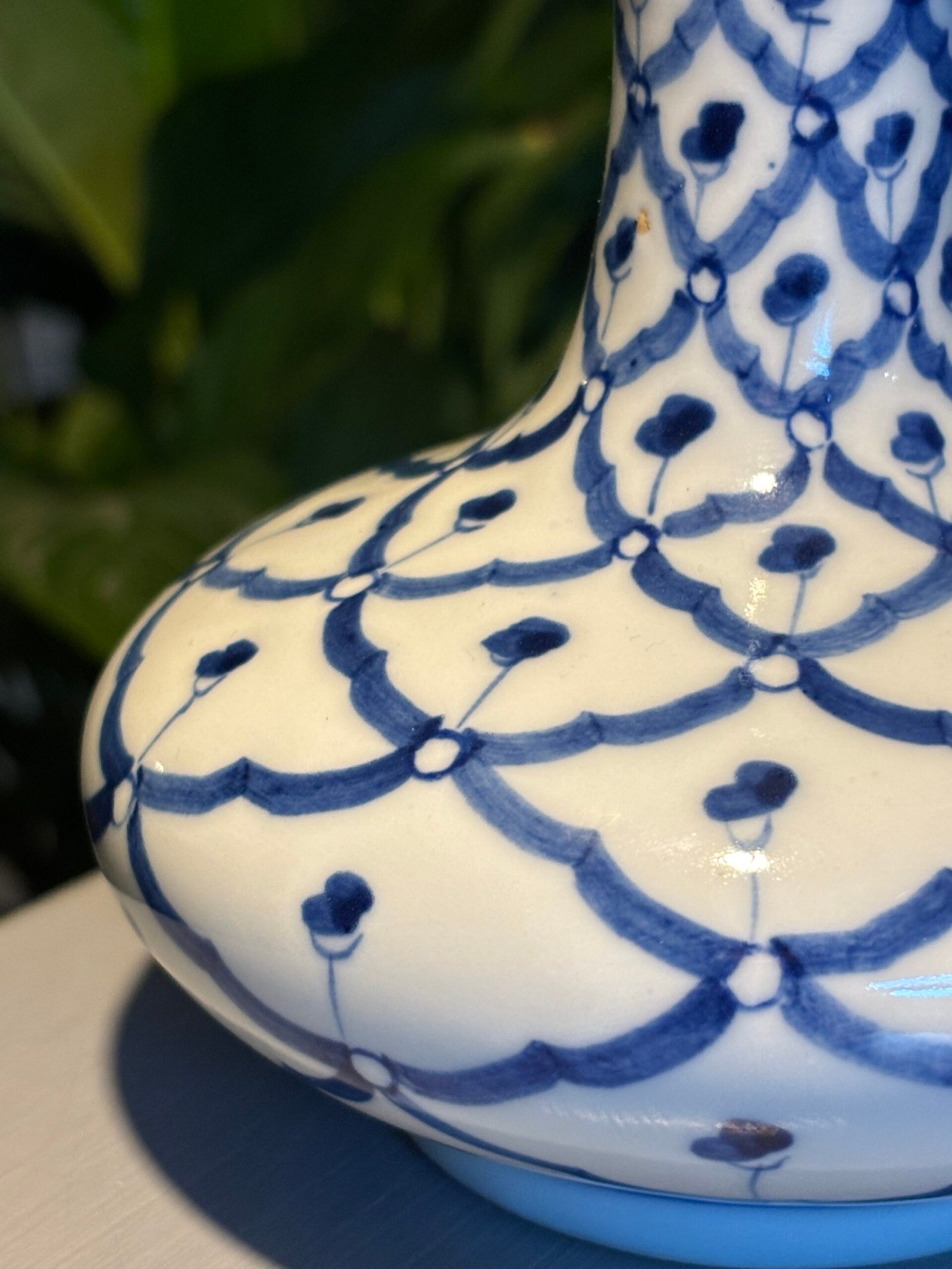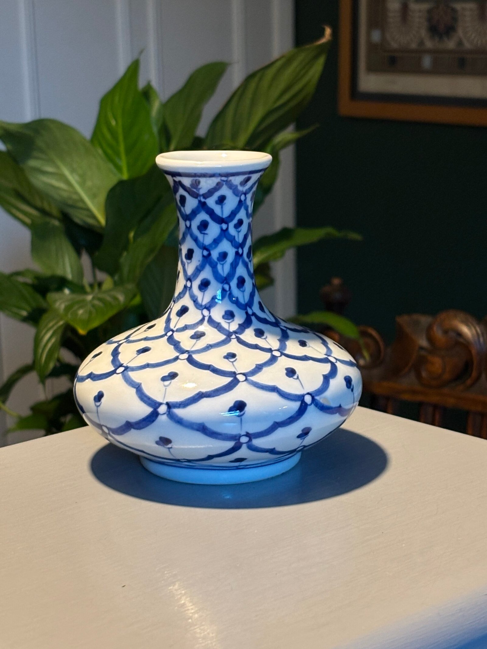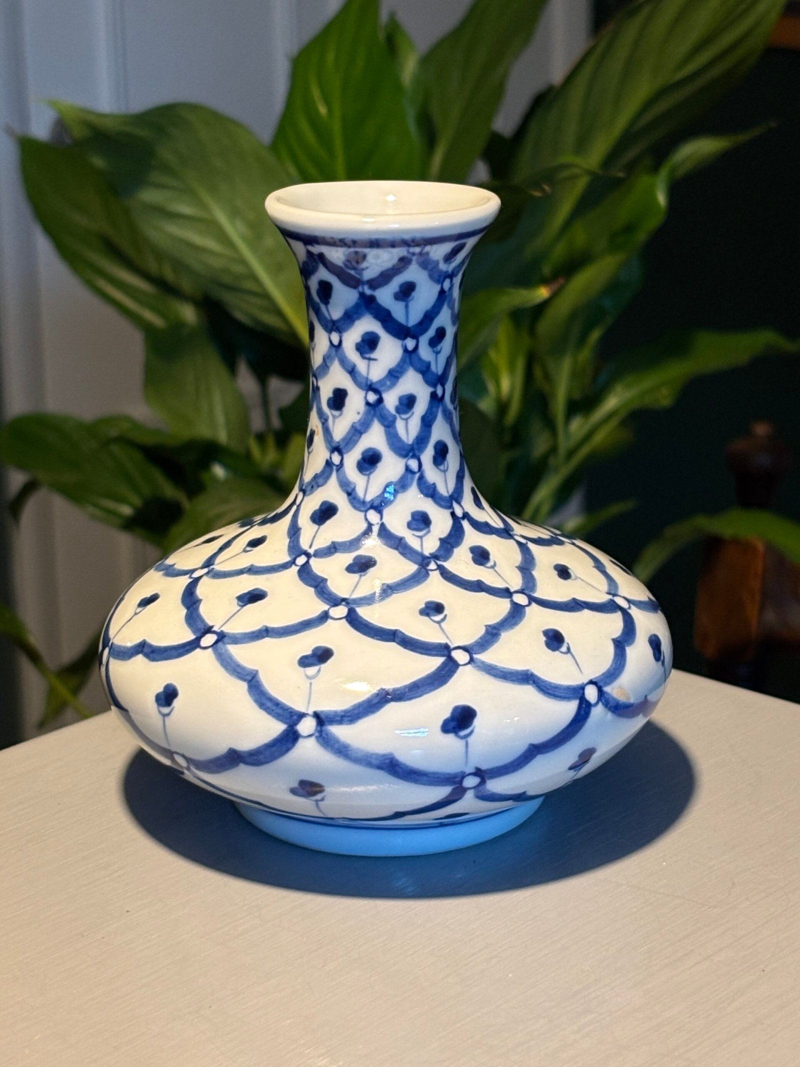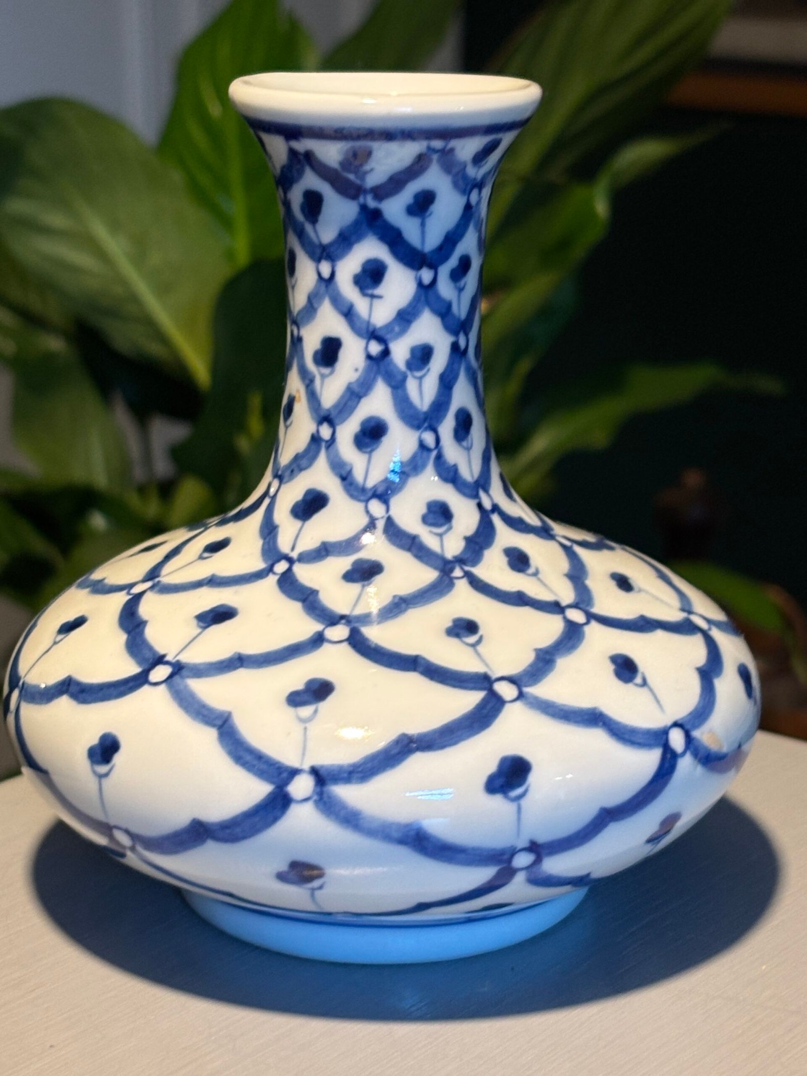 A beautiful Thai Handcrafted Blue and White Porcelain Vase, Late 20th Century.