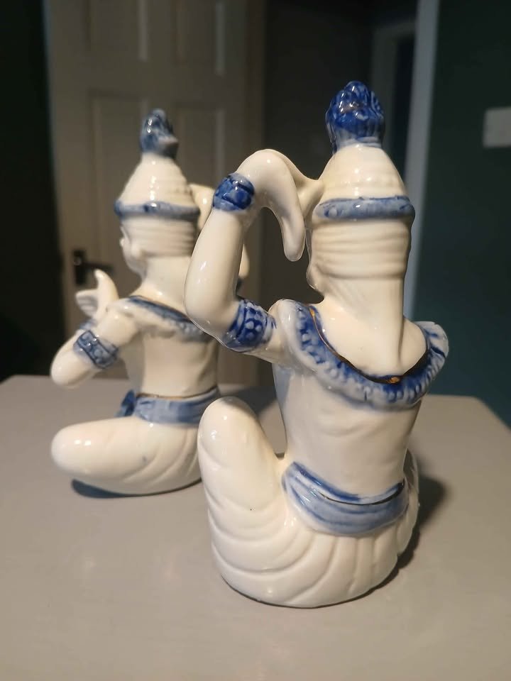 A pair of vintage Siamese, Thai temple dancers.