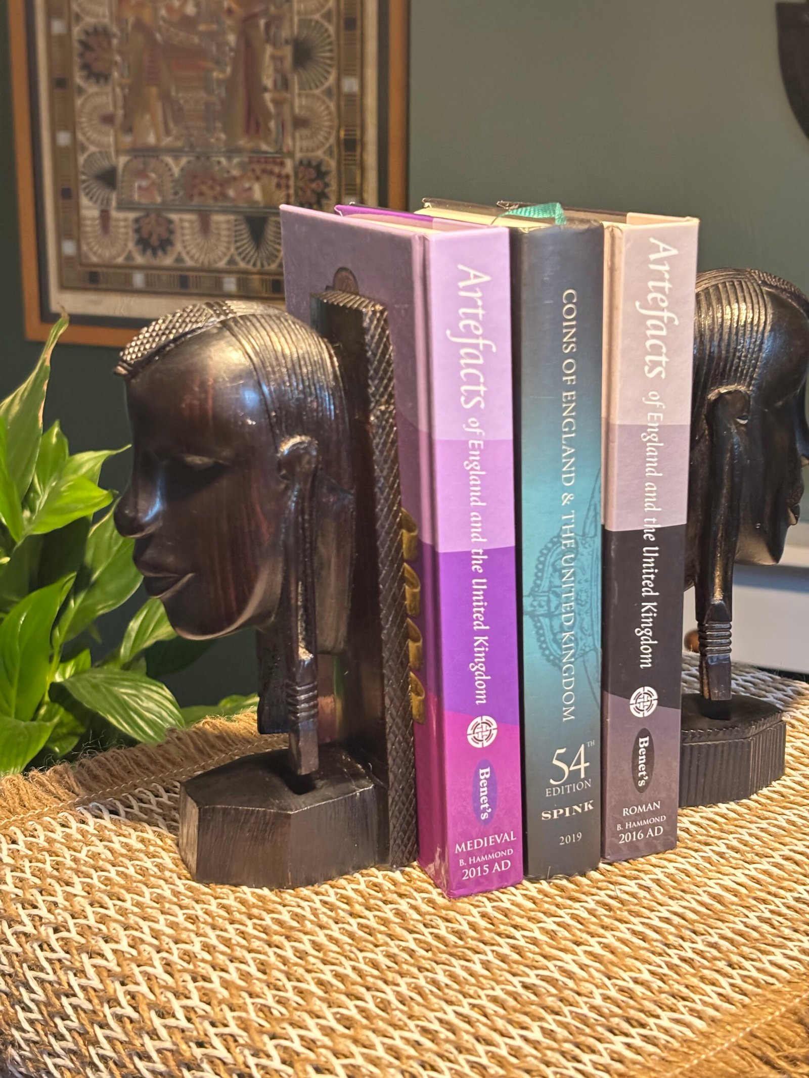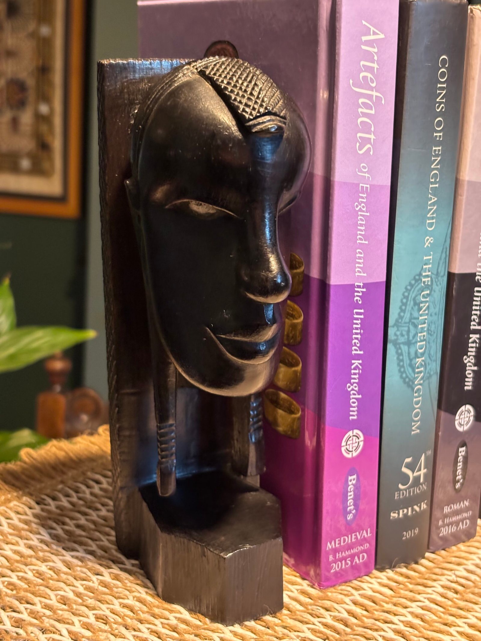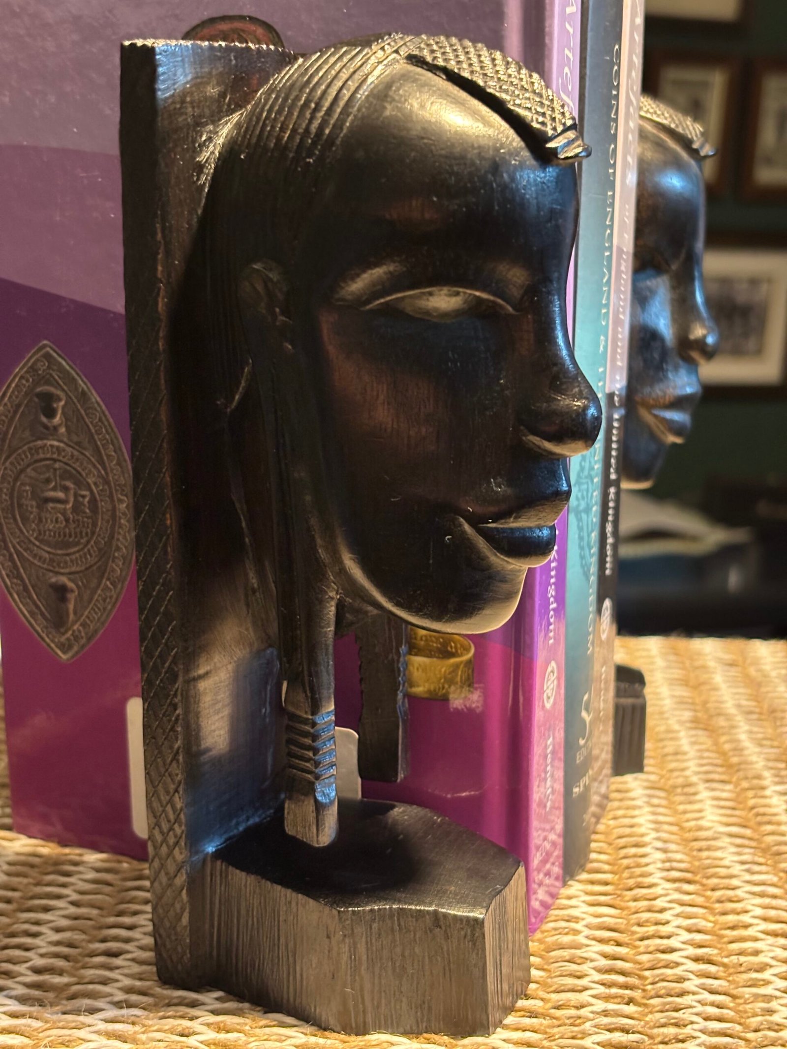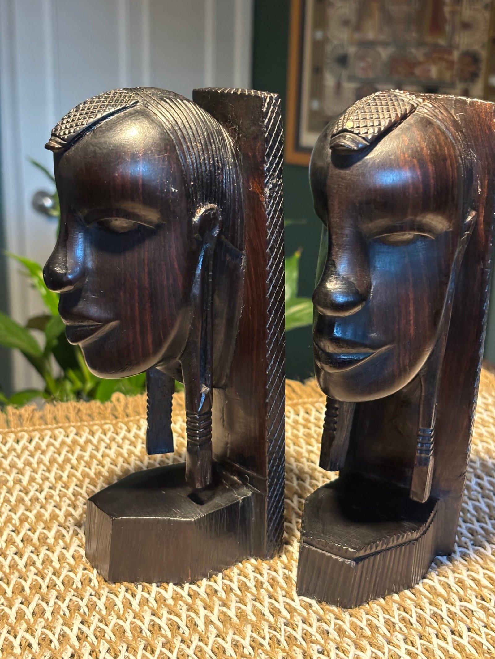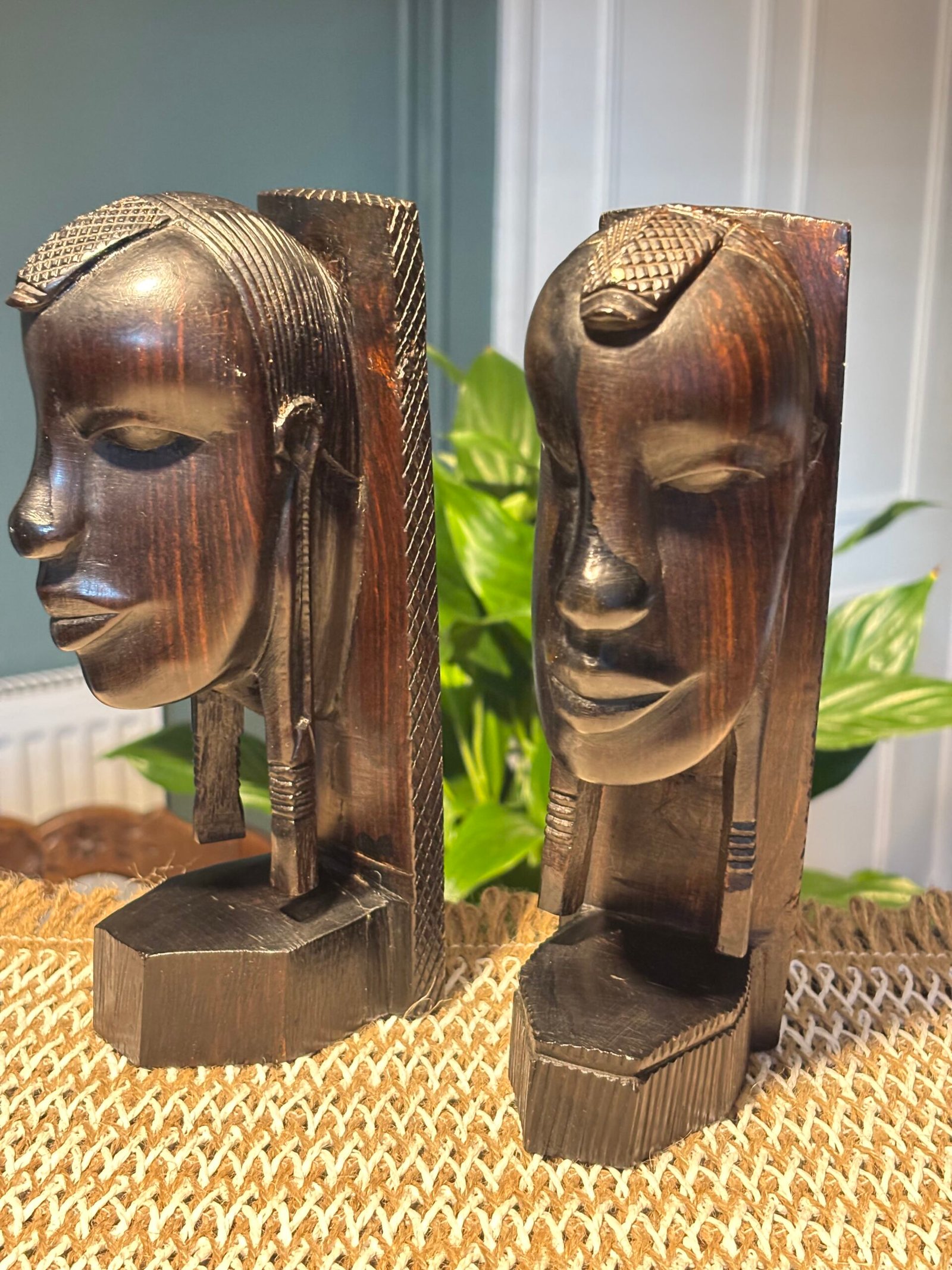 A lovely pair of vintage African hand carved mid century hardwood bookends.