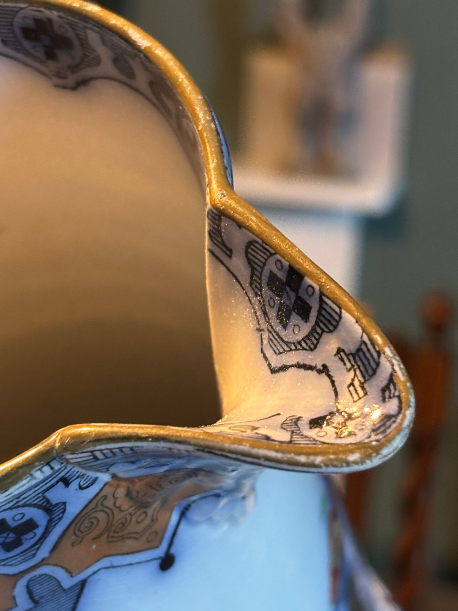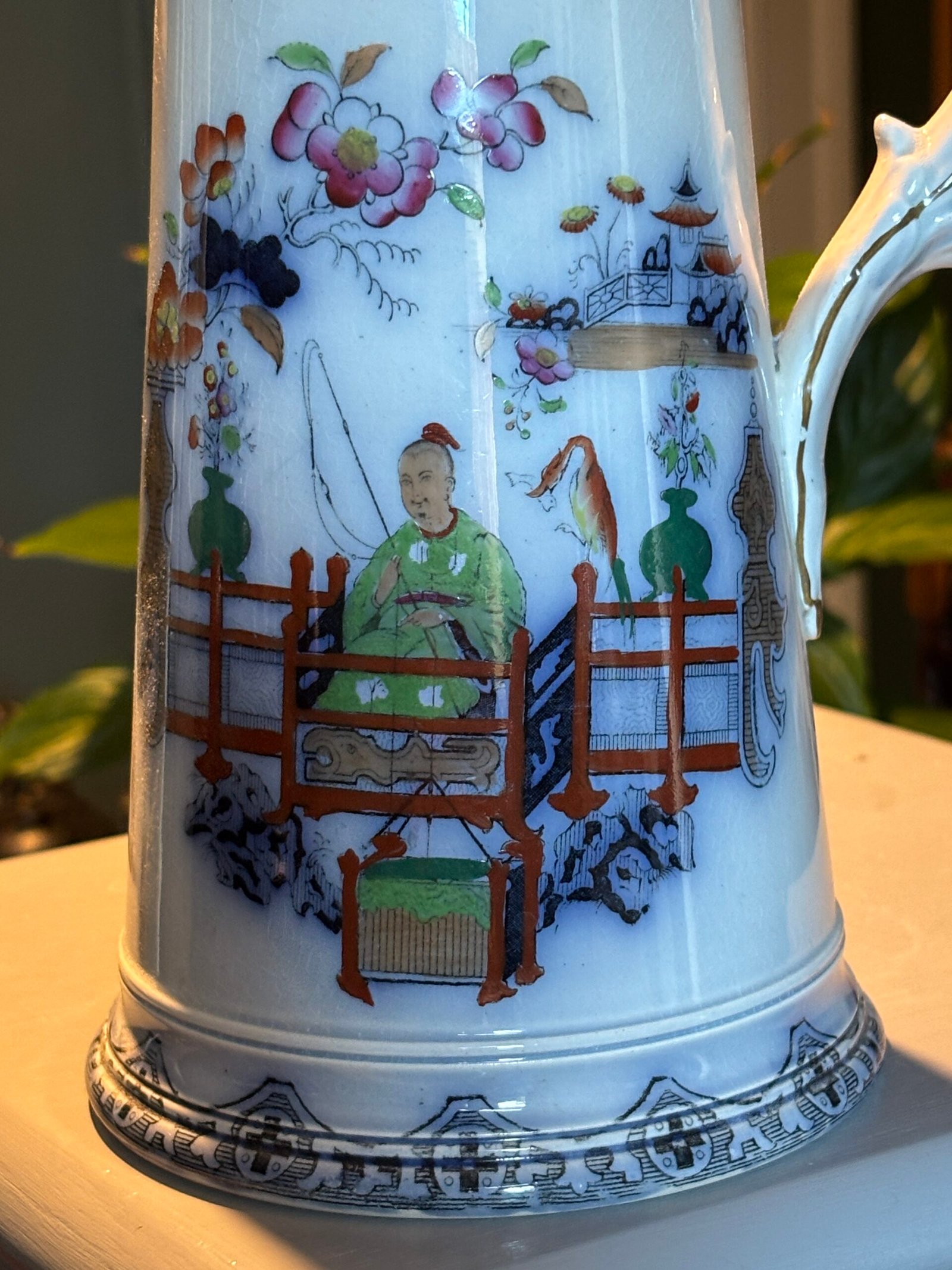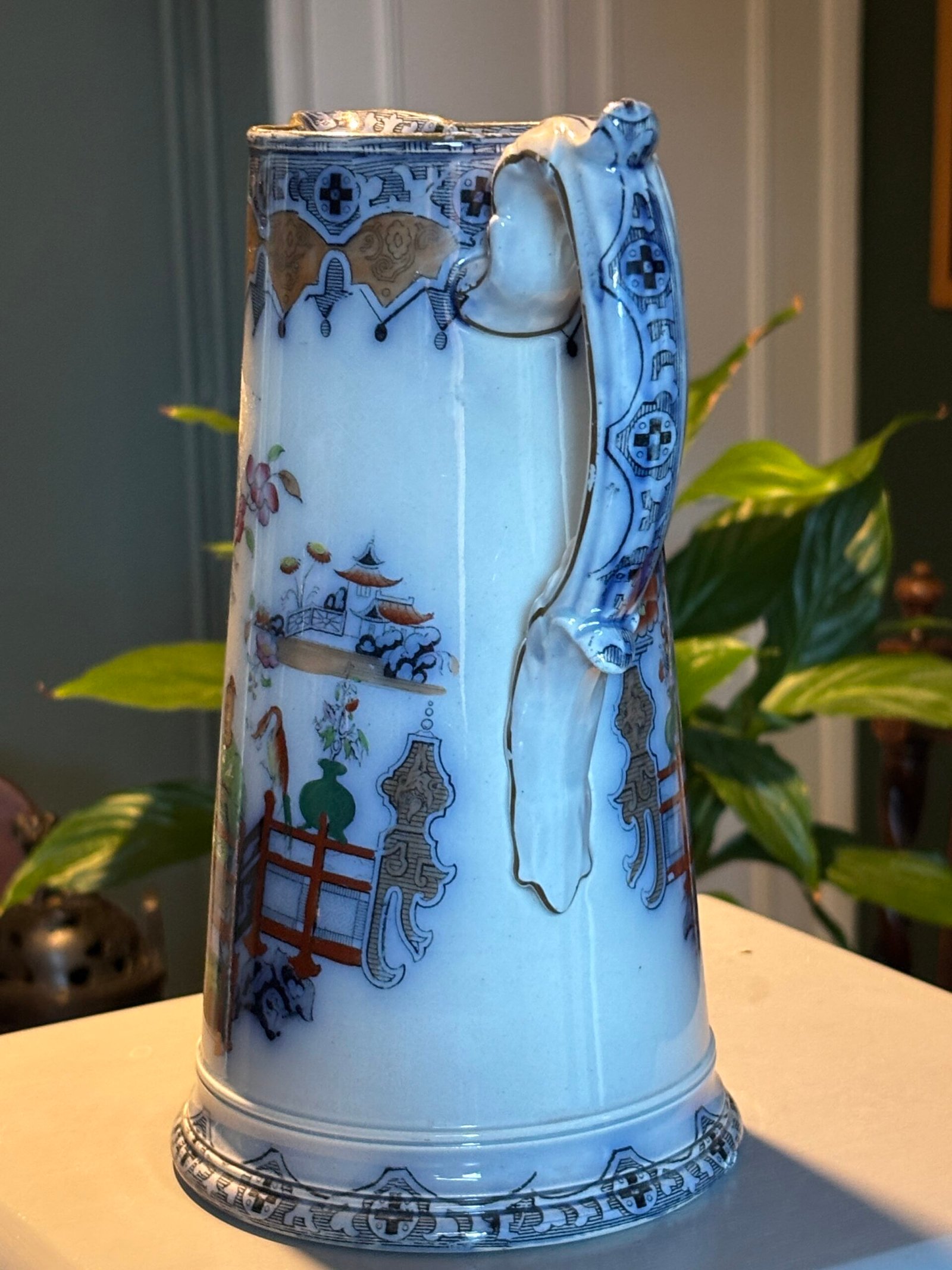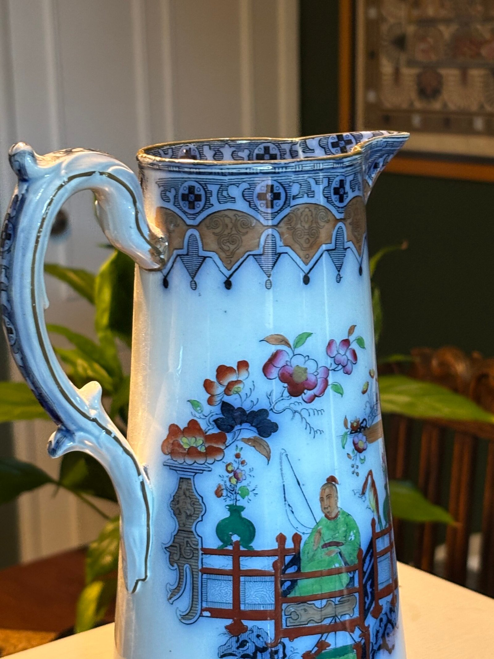 A stunning Victorian antique ceramic jug featuring a highly detailed Chinoiserie scene.