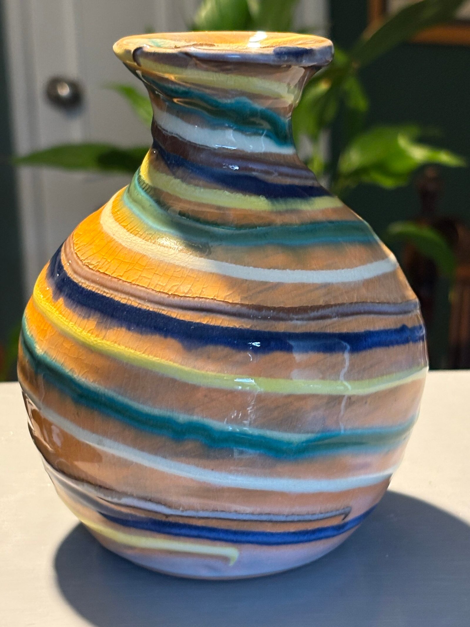 A stunning, authentic studio pottery vase from Earthworks Barbados.