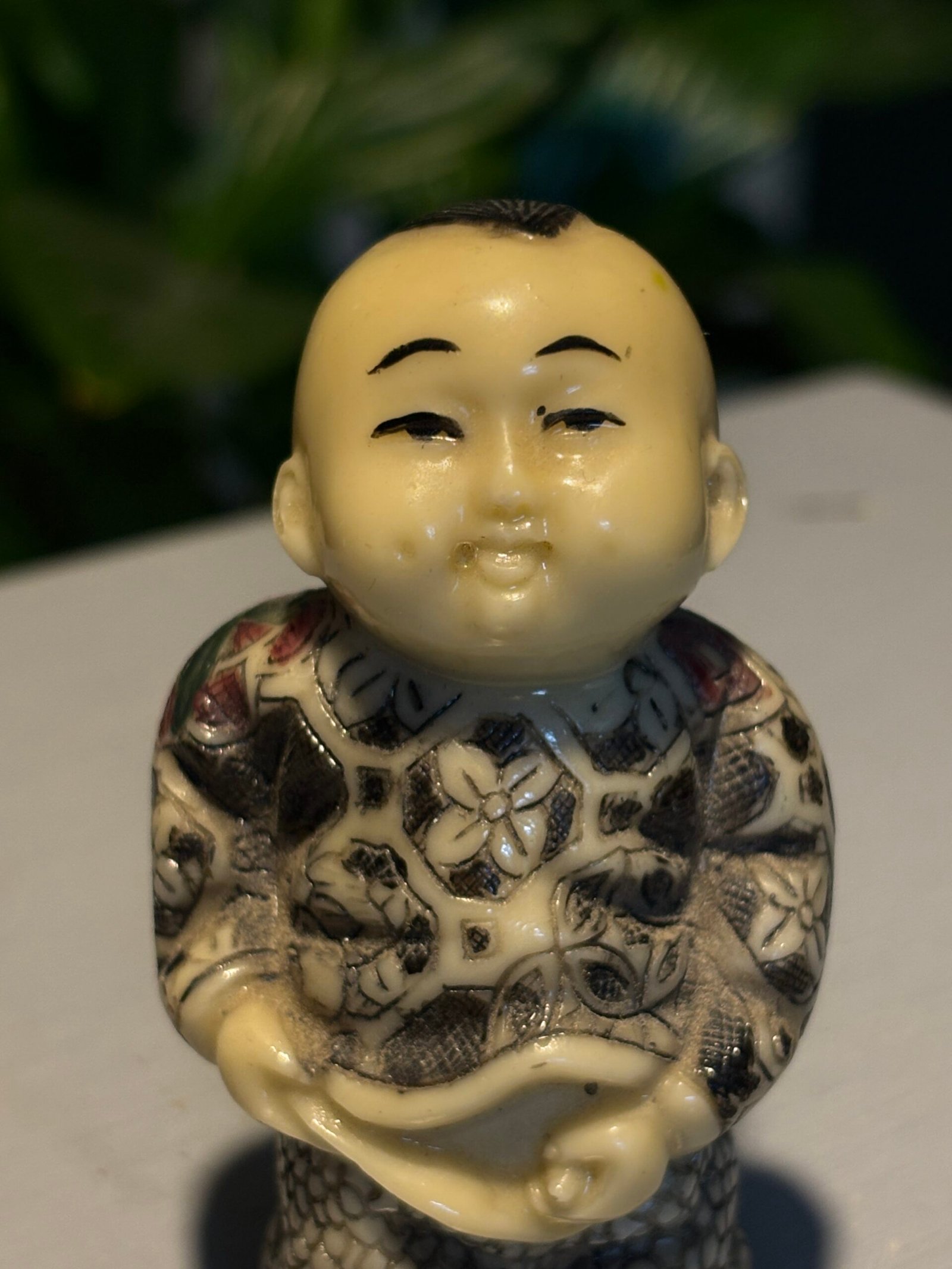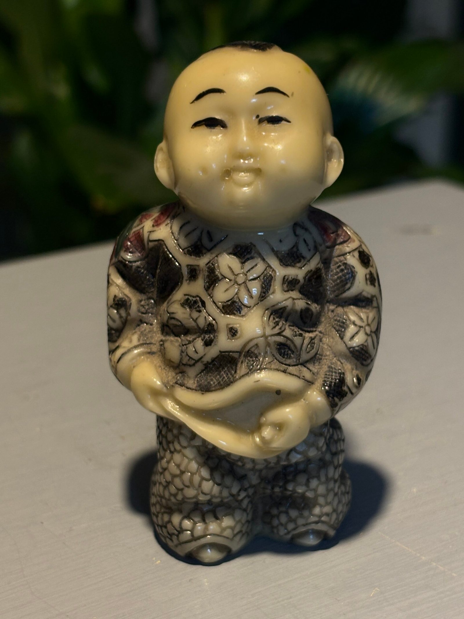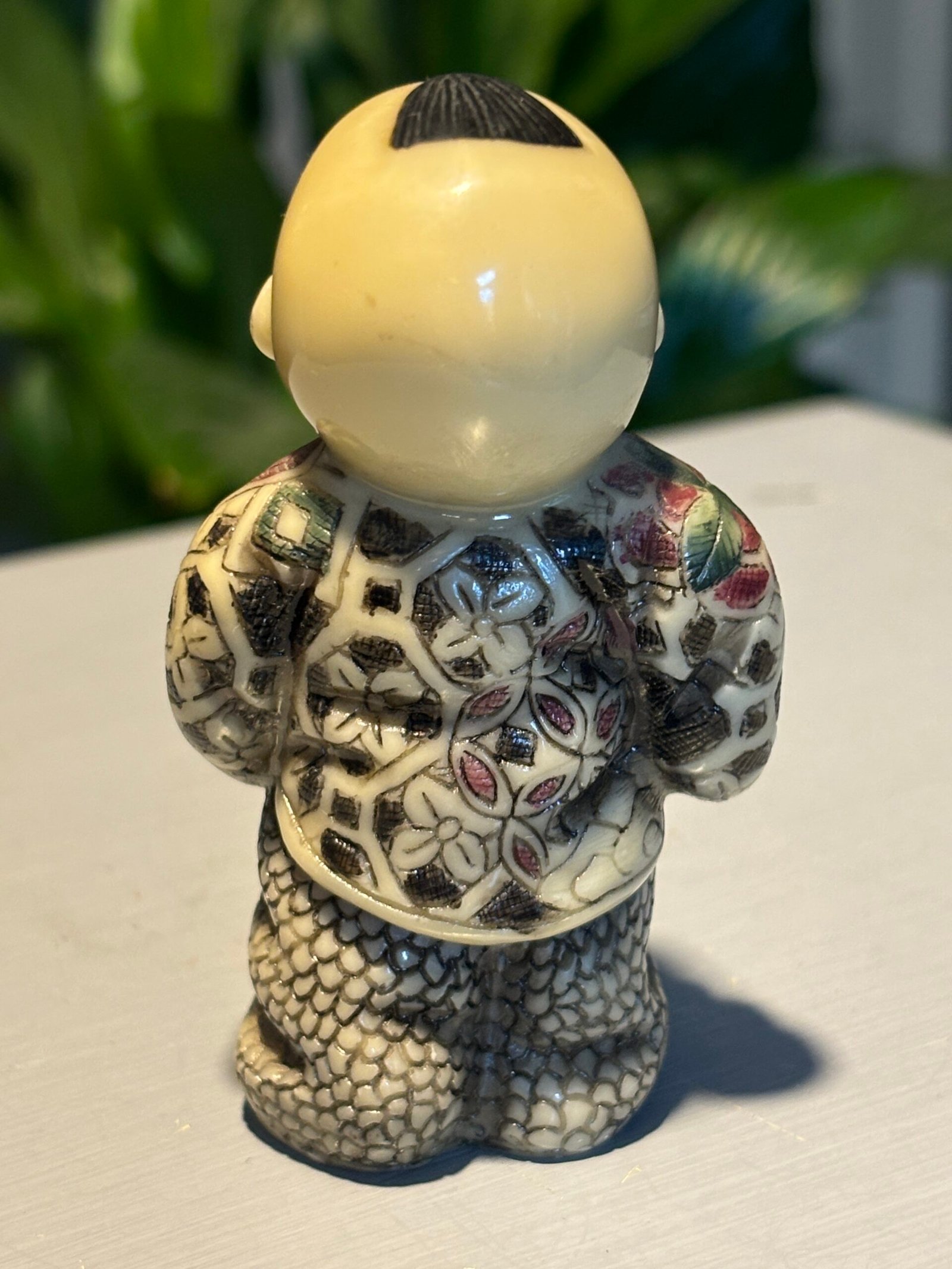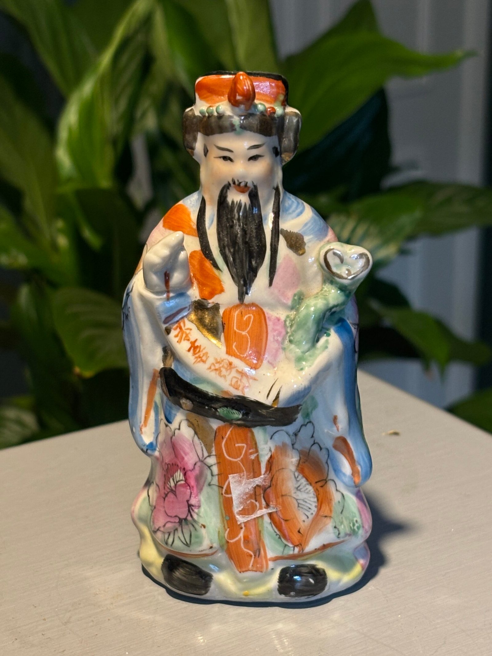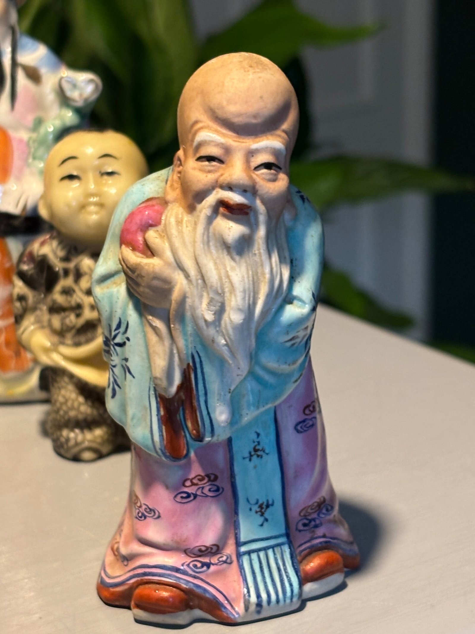 A charming set of four East Asian vintage figures. This set includes the “Three Star Gods” of luck and a detailed Japanese-style Karako boy.