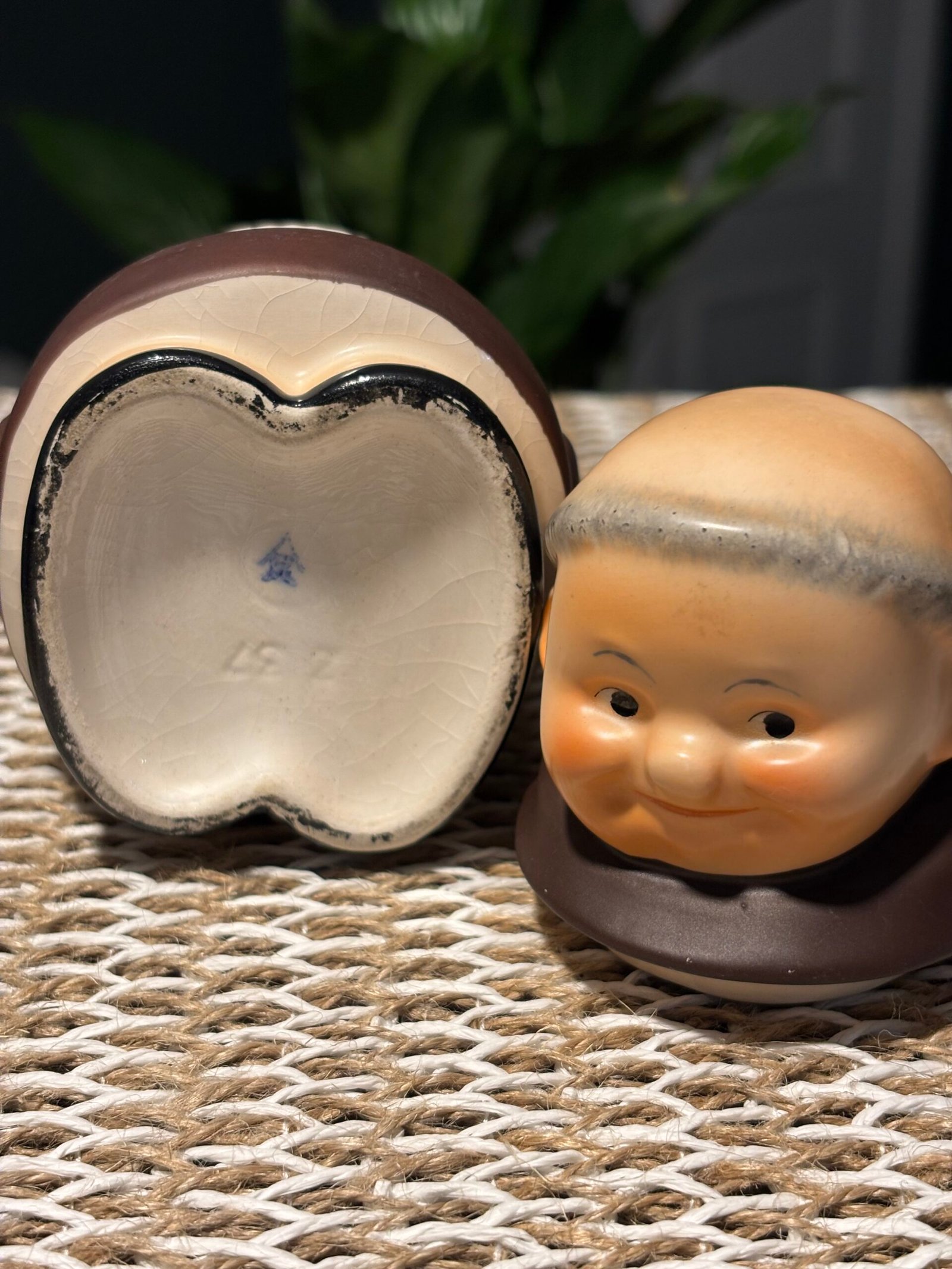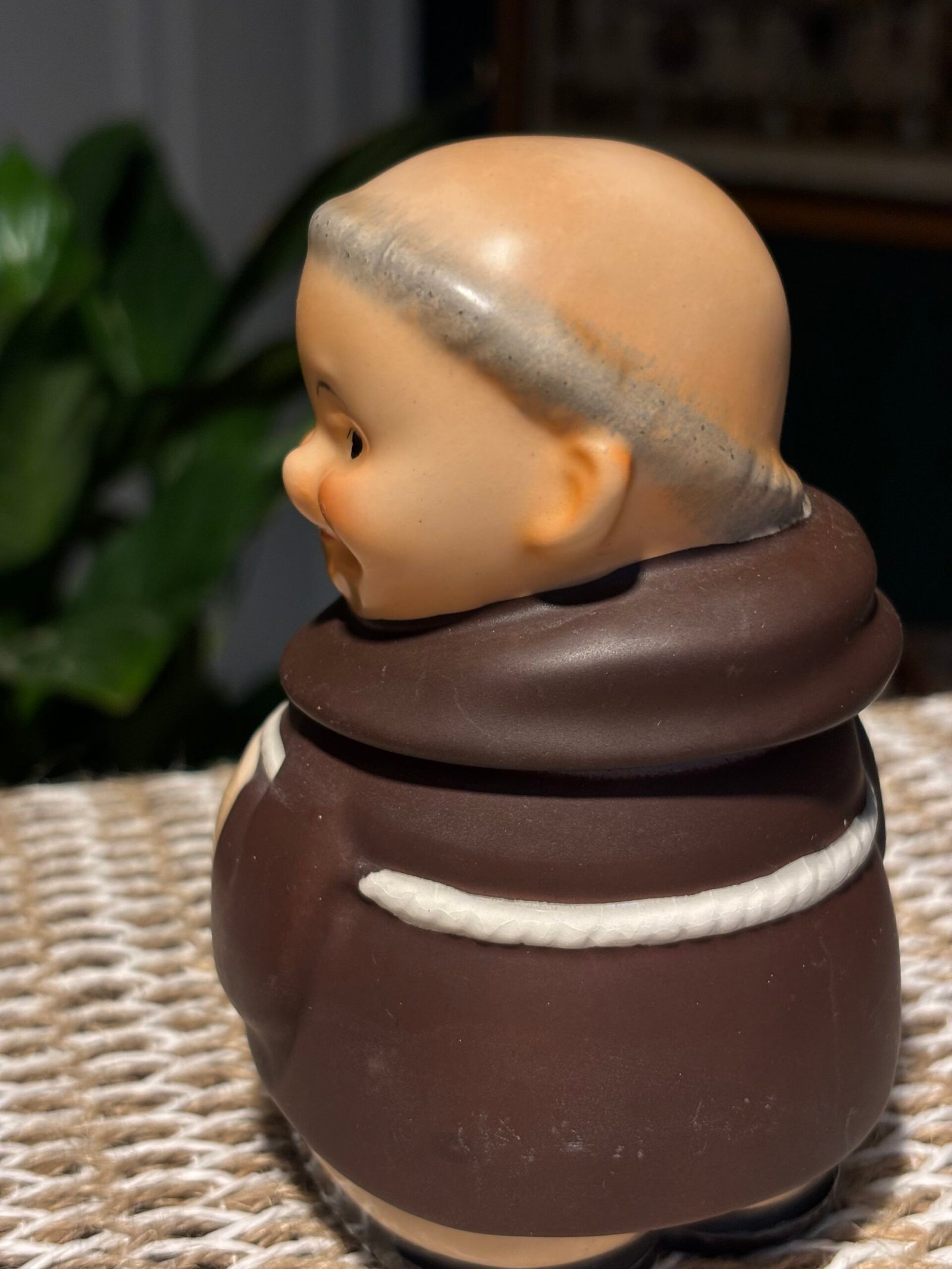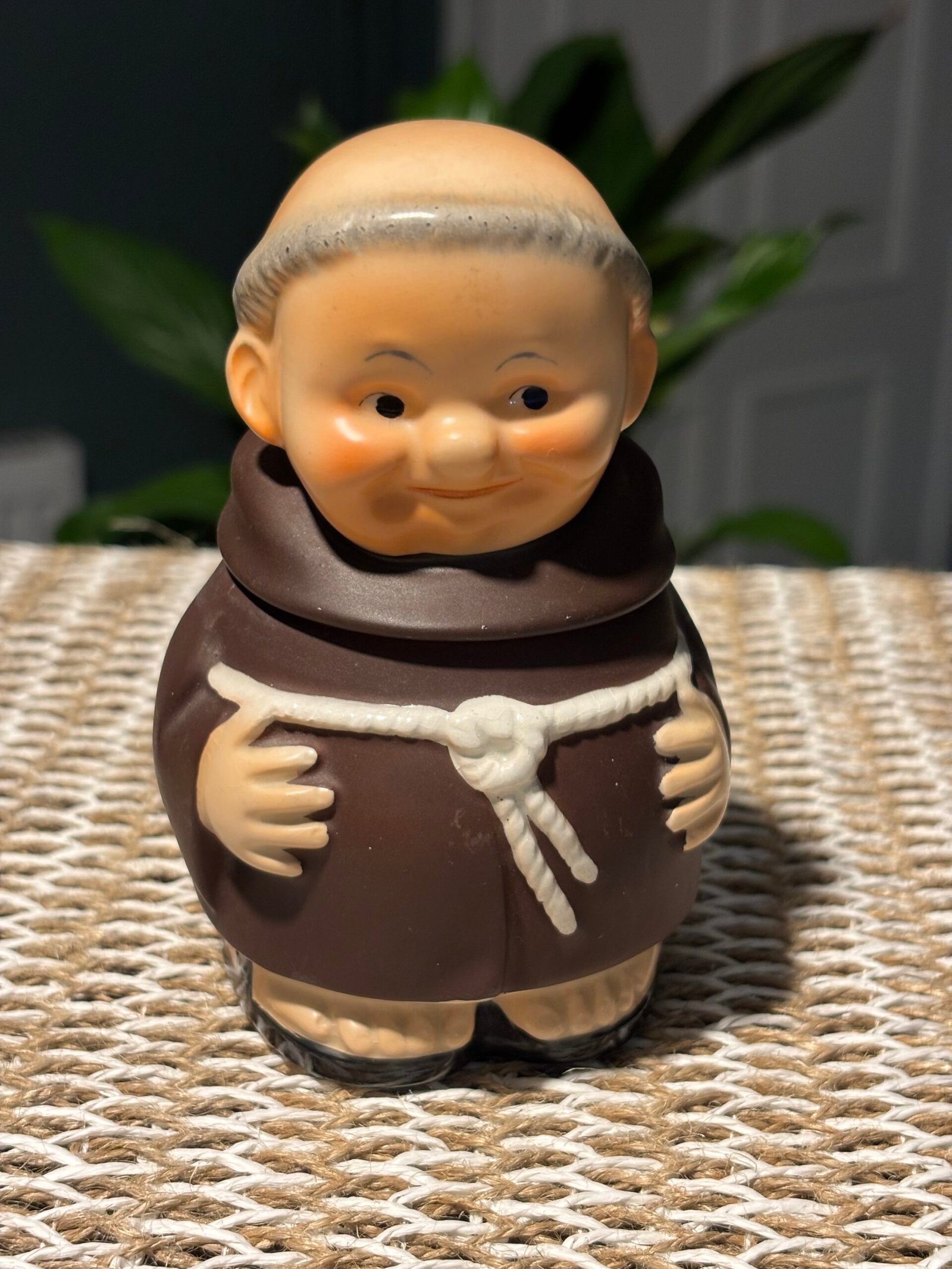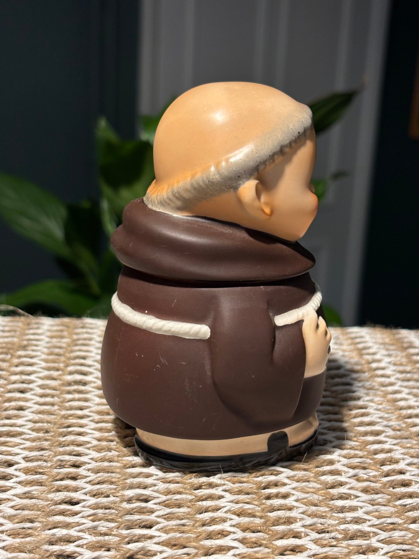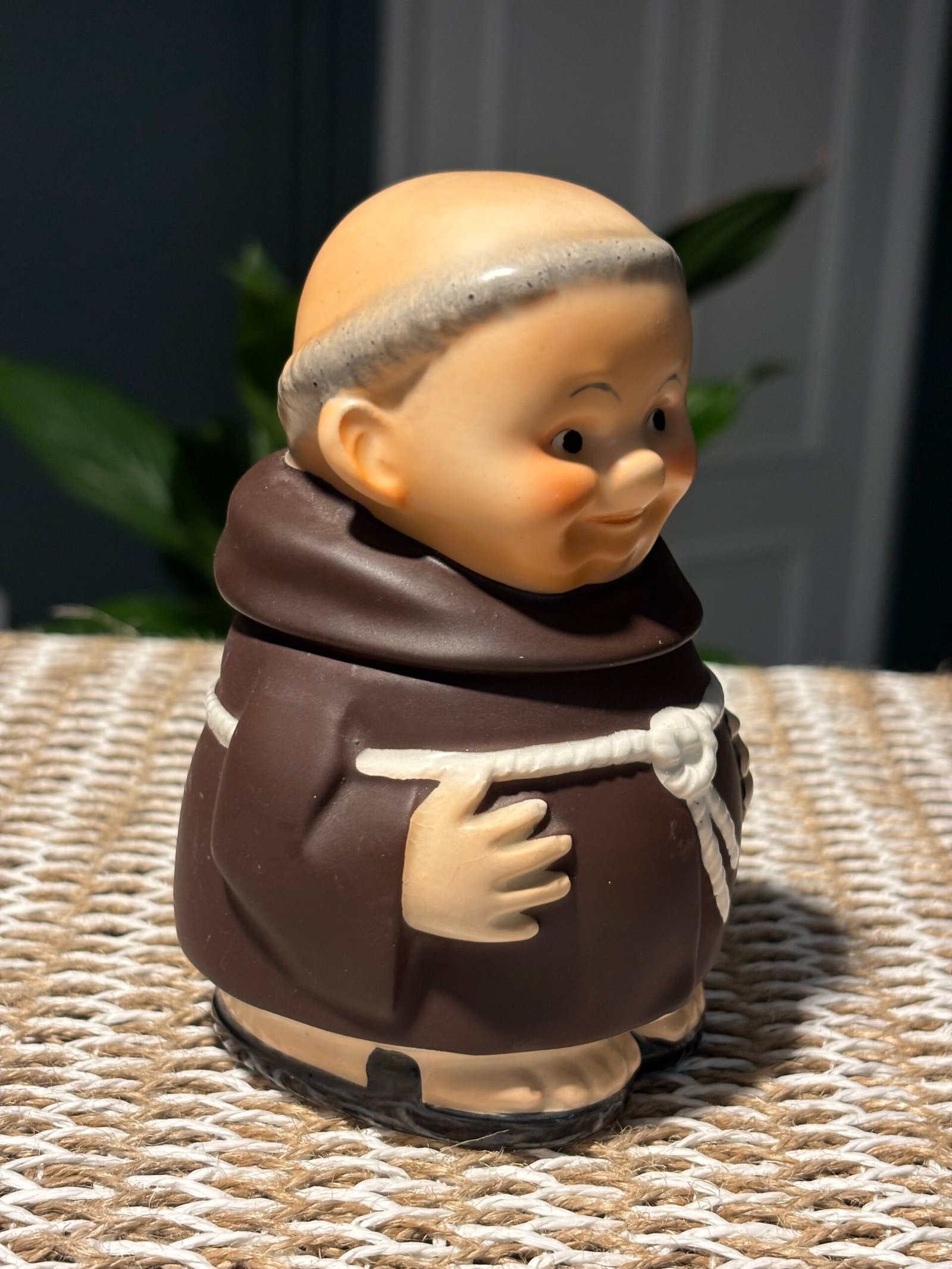 A lovely little collectable, kitsch vintage 1956 Friar Tuck Monk Covered Sugar Jar, Goebel made in West Germany. Height 11.5cm
