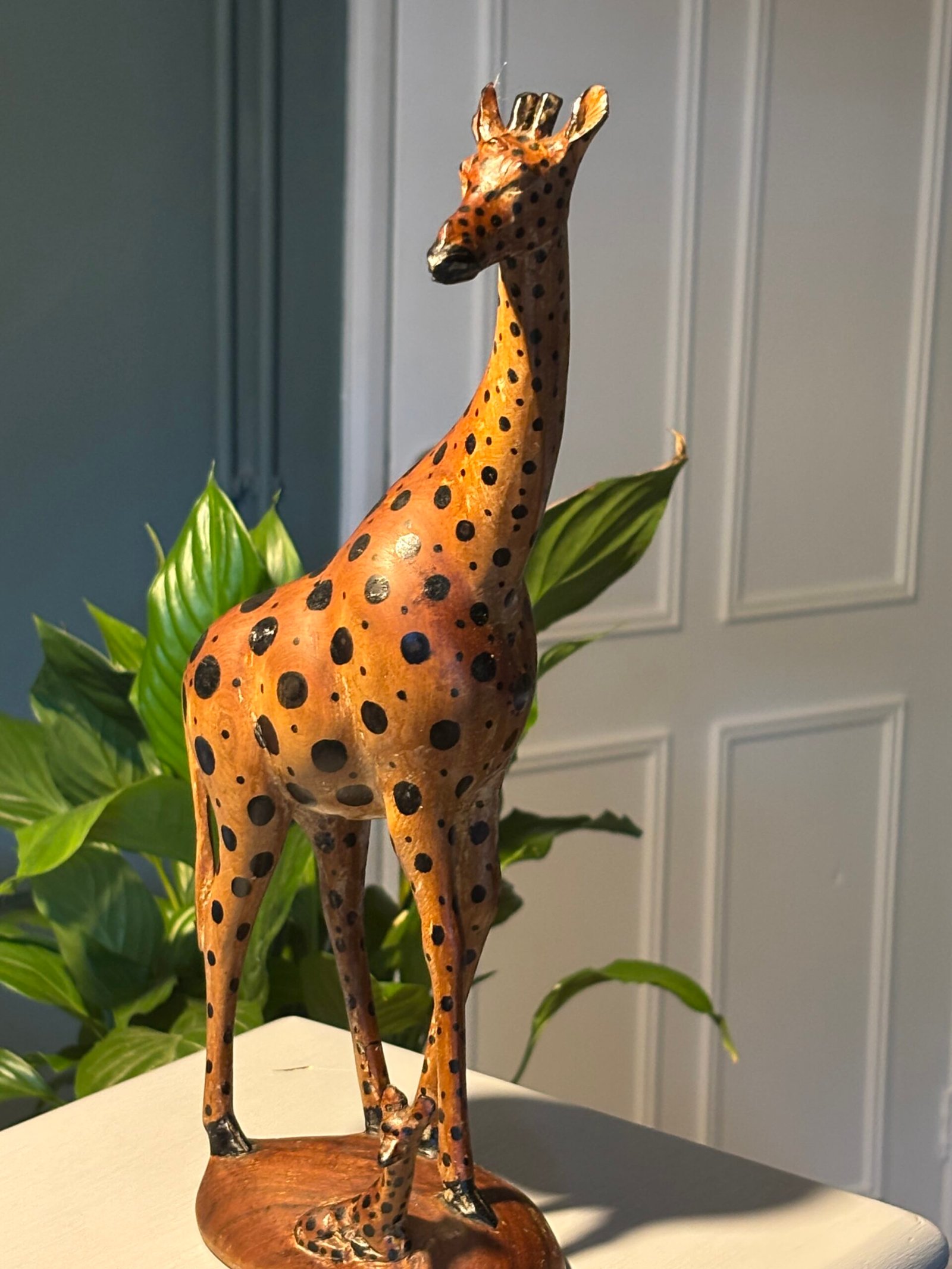 A lovely Vintage hand carved and painted wooden giraffe and baby.