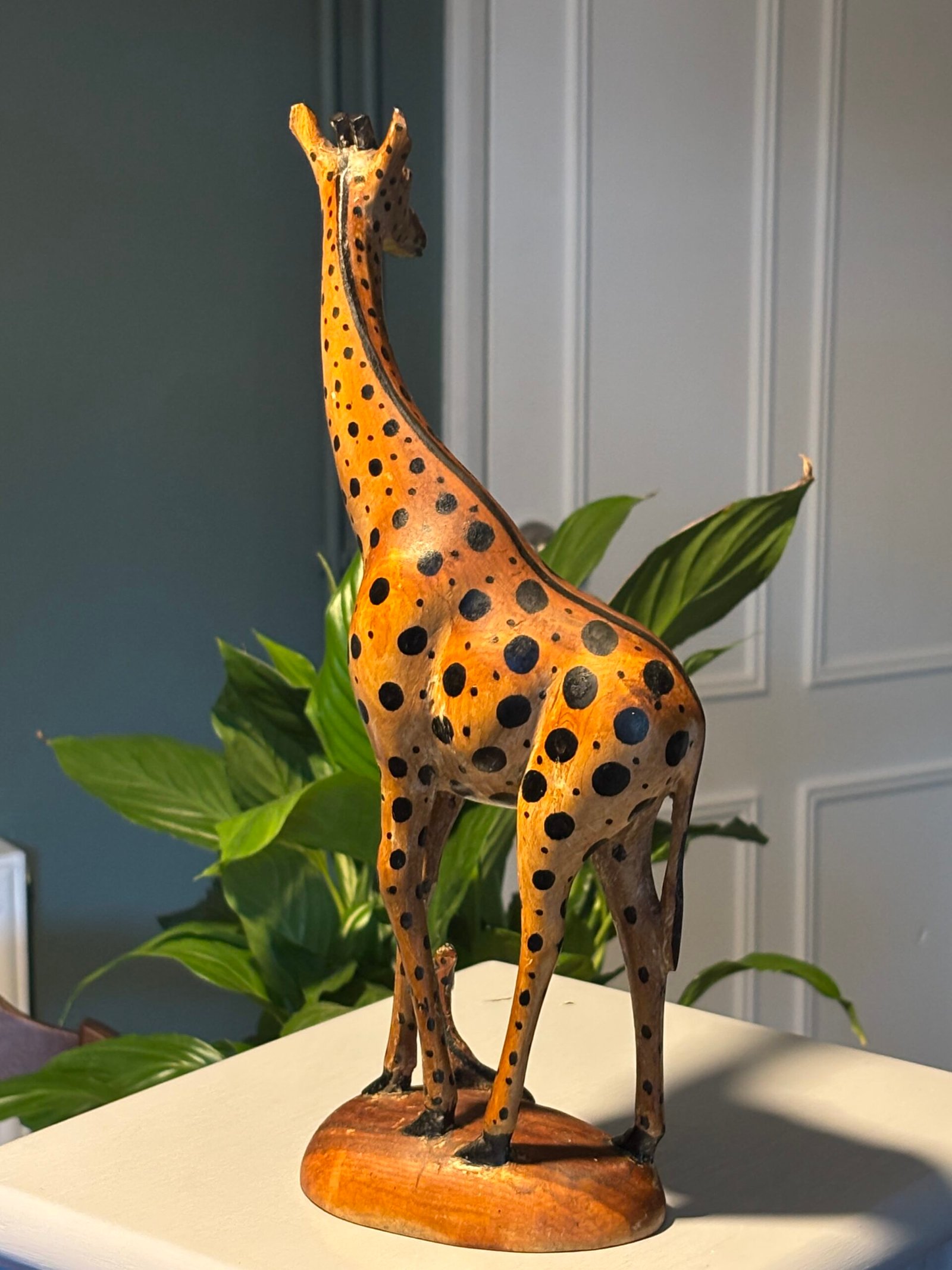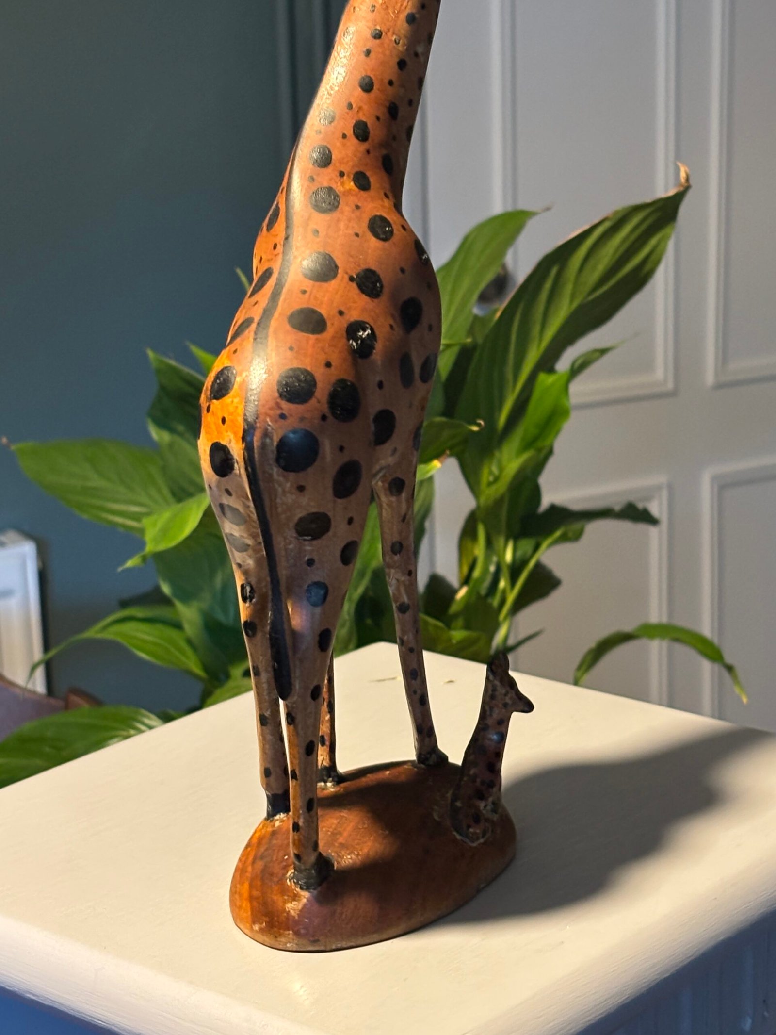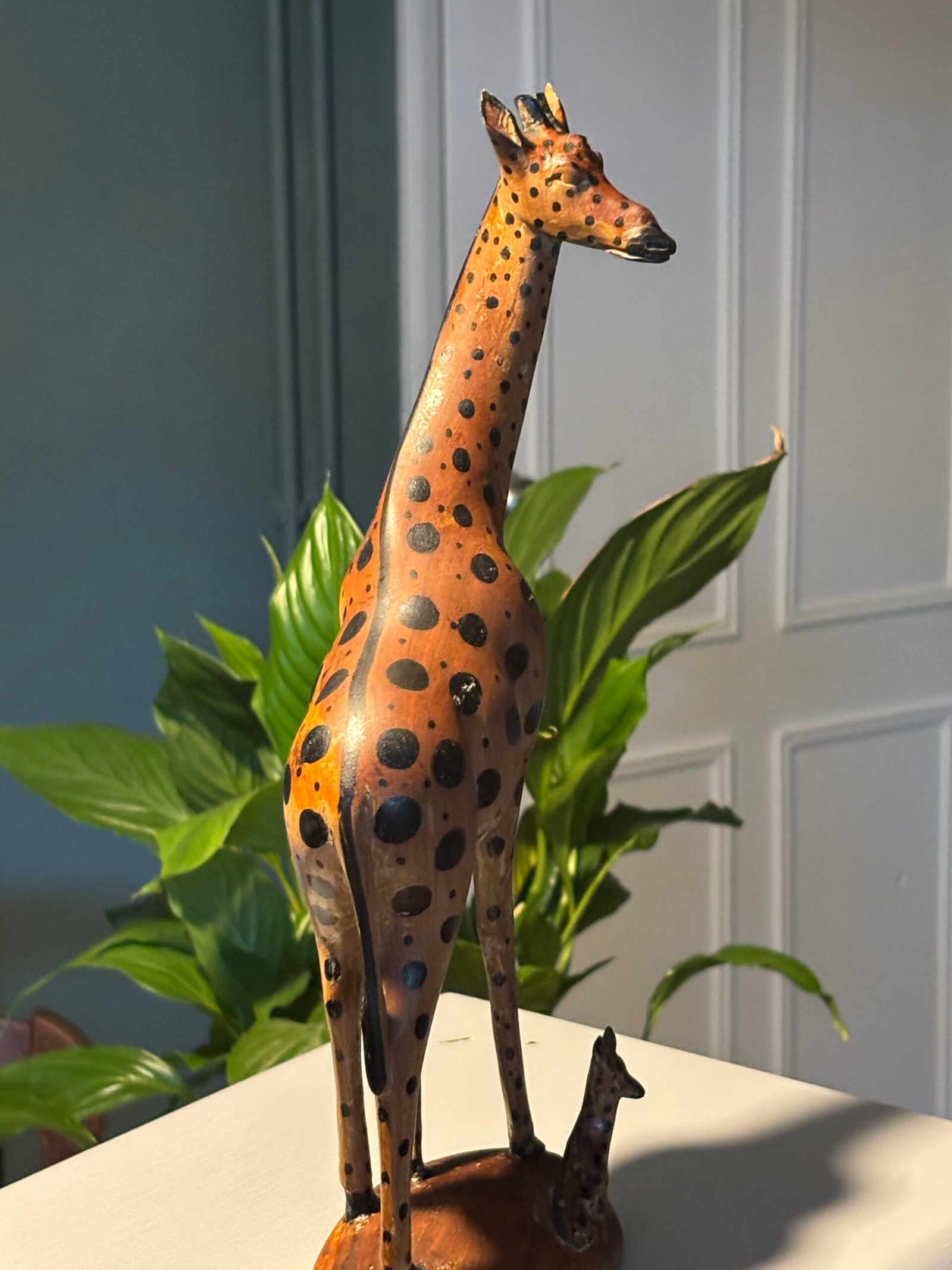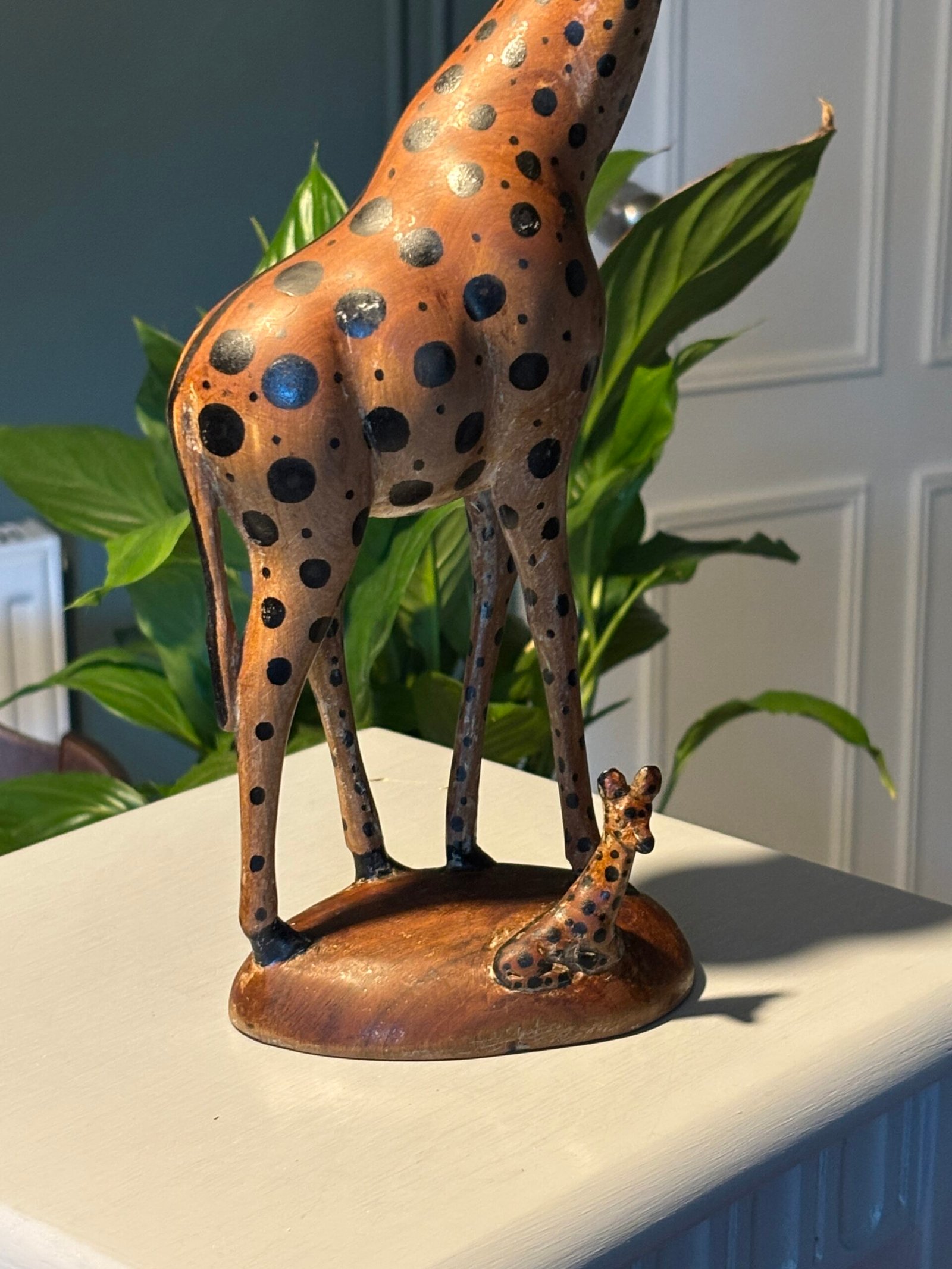 Lovely Vintage hand carved wooden giraffe and baby 31cm tall.Availability: 1 in stock