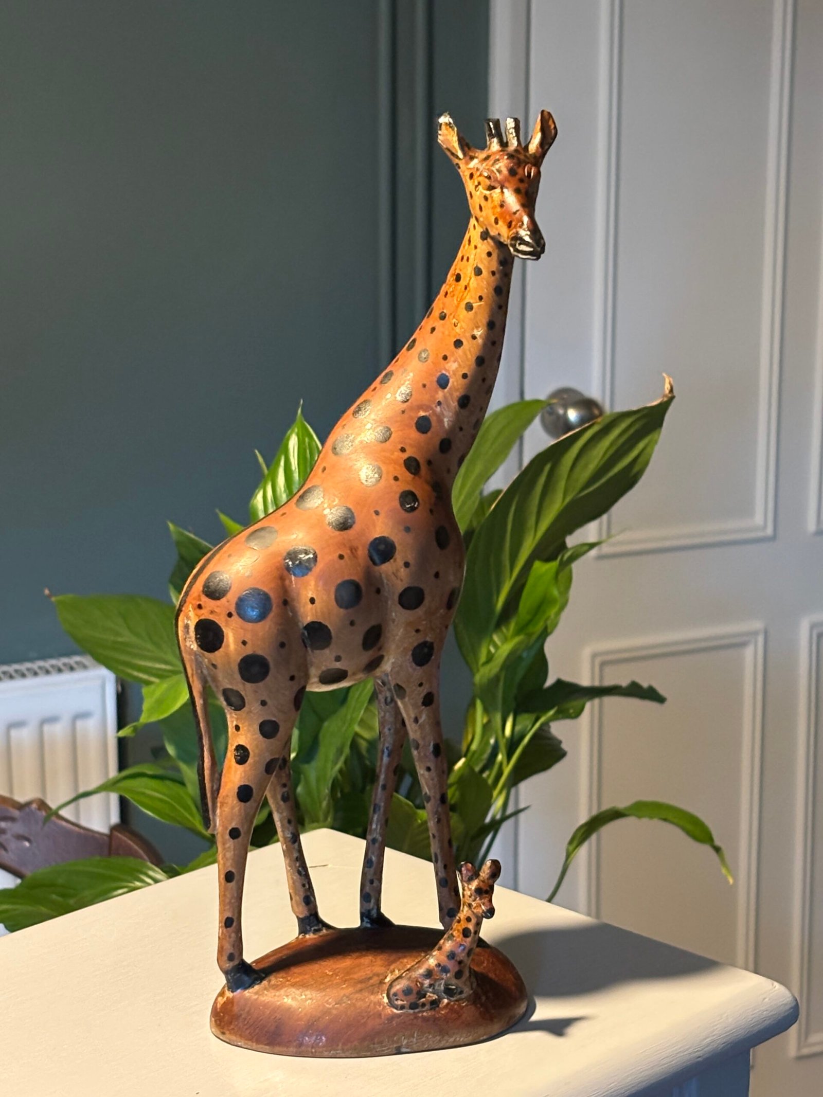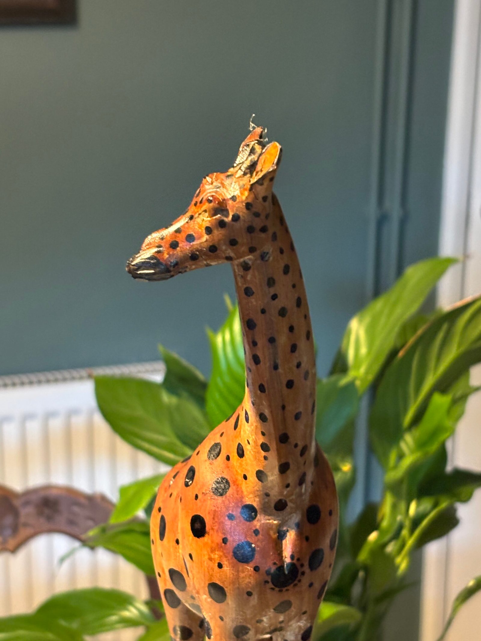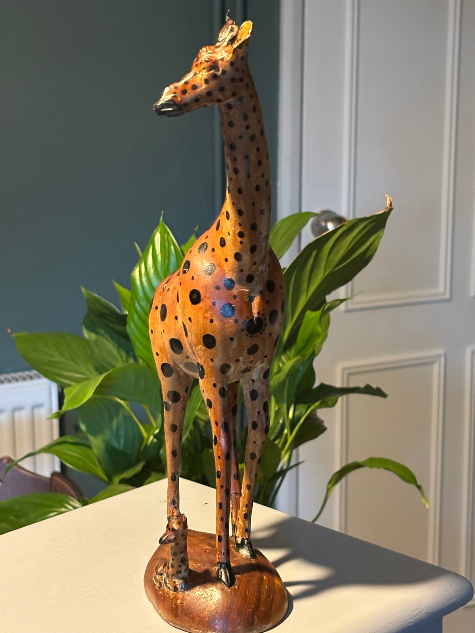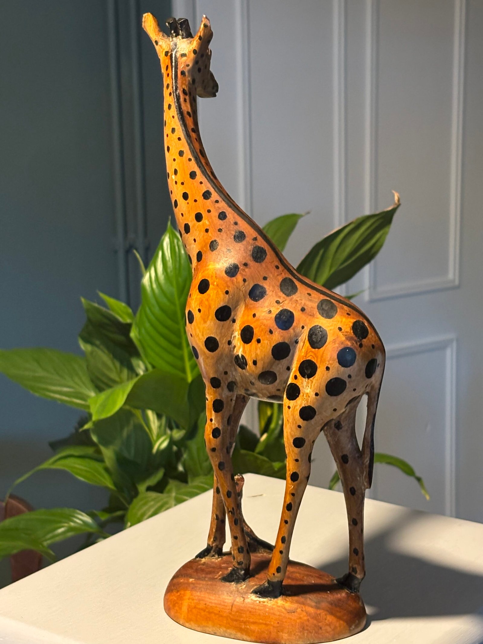 Lovely Vintage hand carved wooden giraffe and baby 31cm tall.Availability: 1 in stock