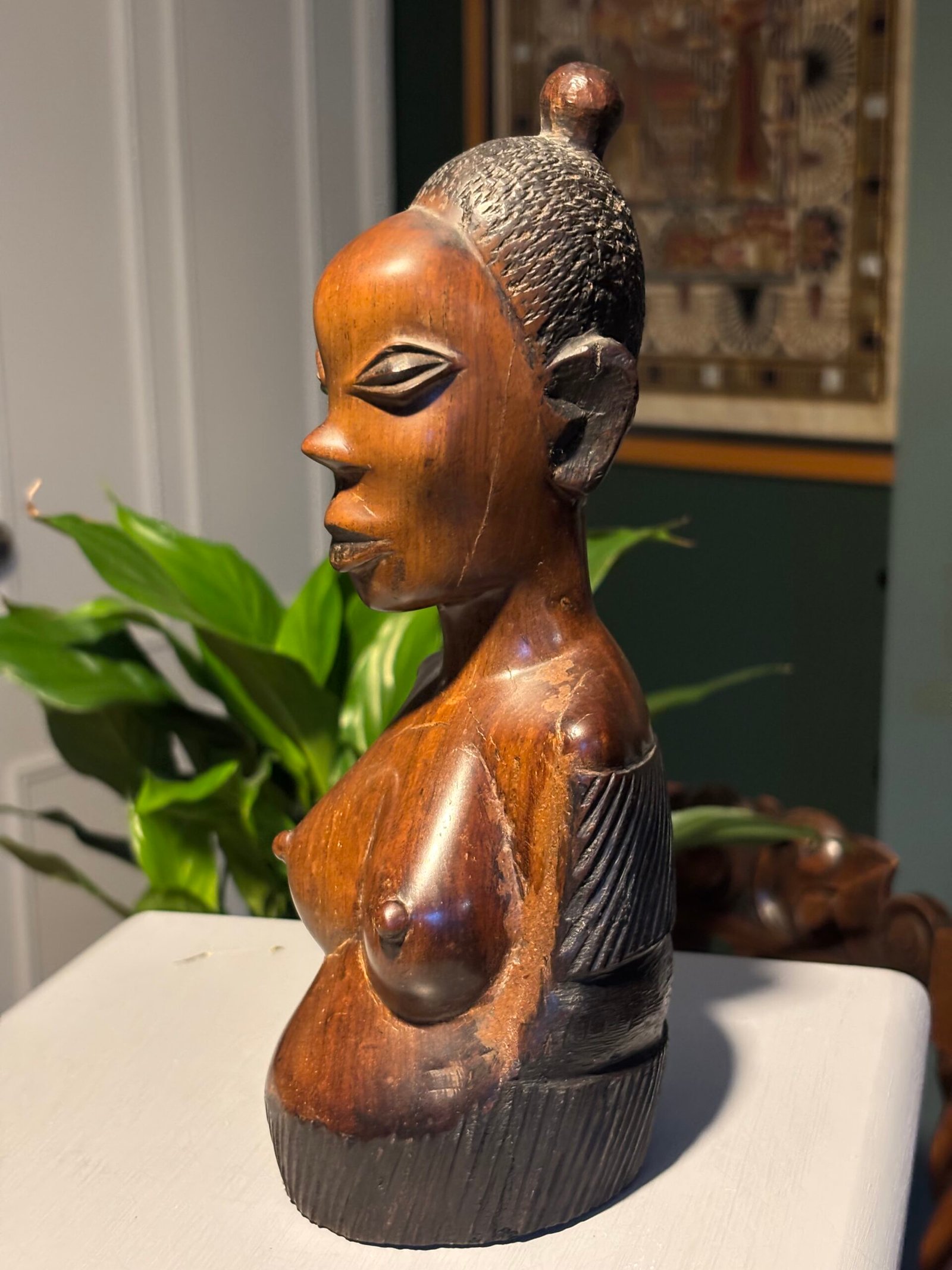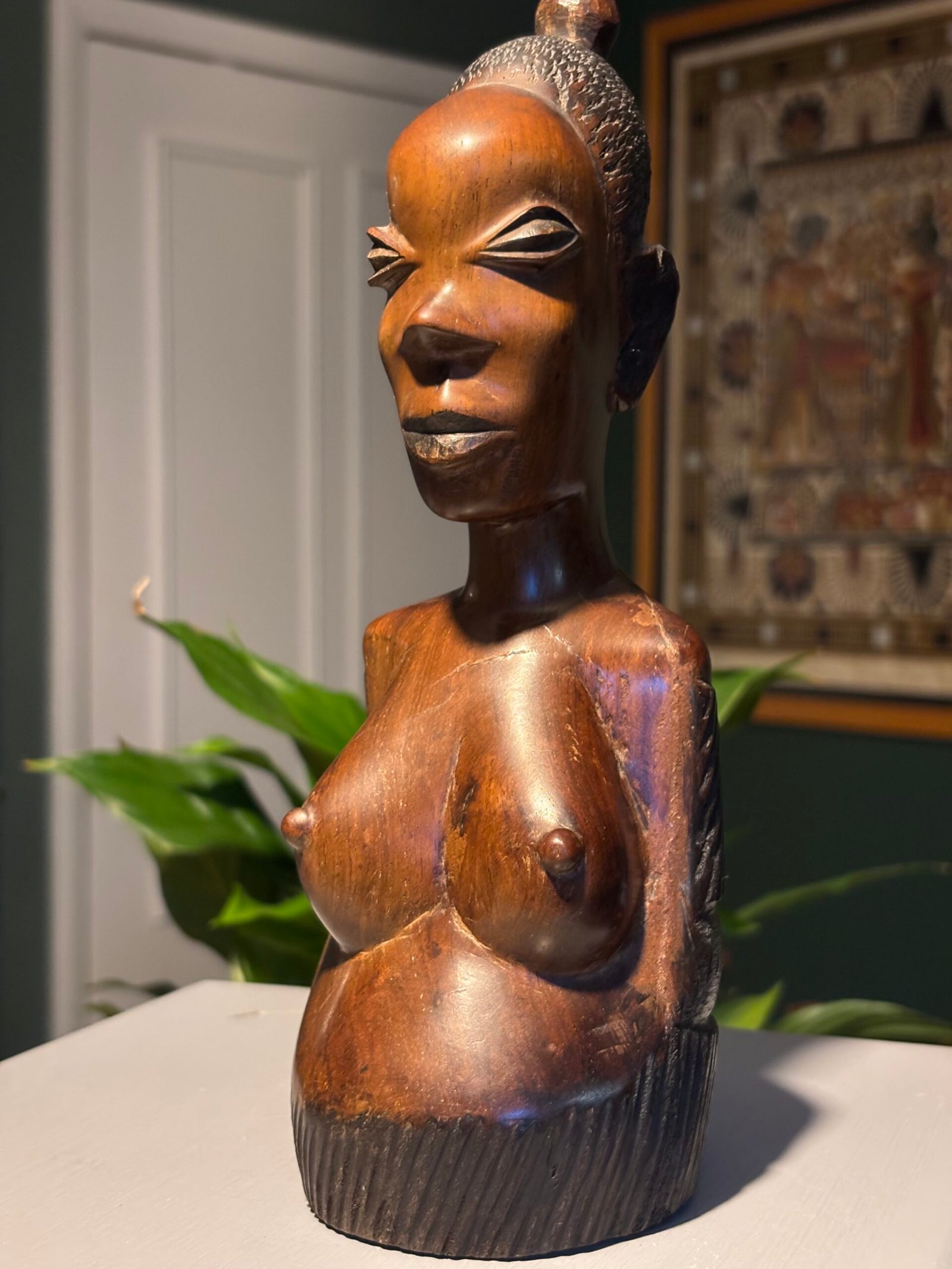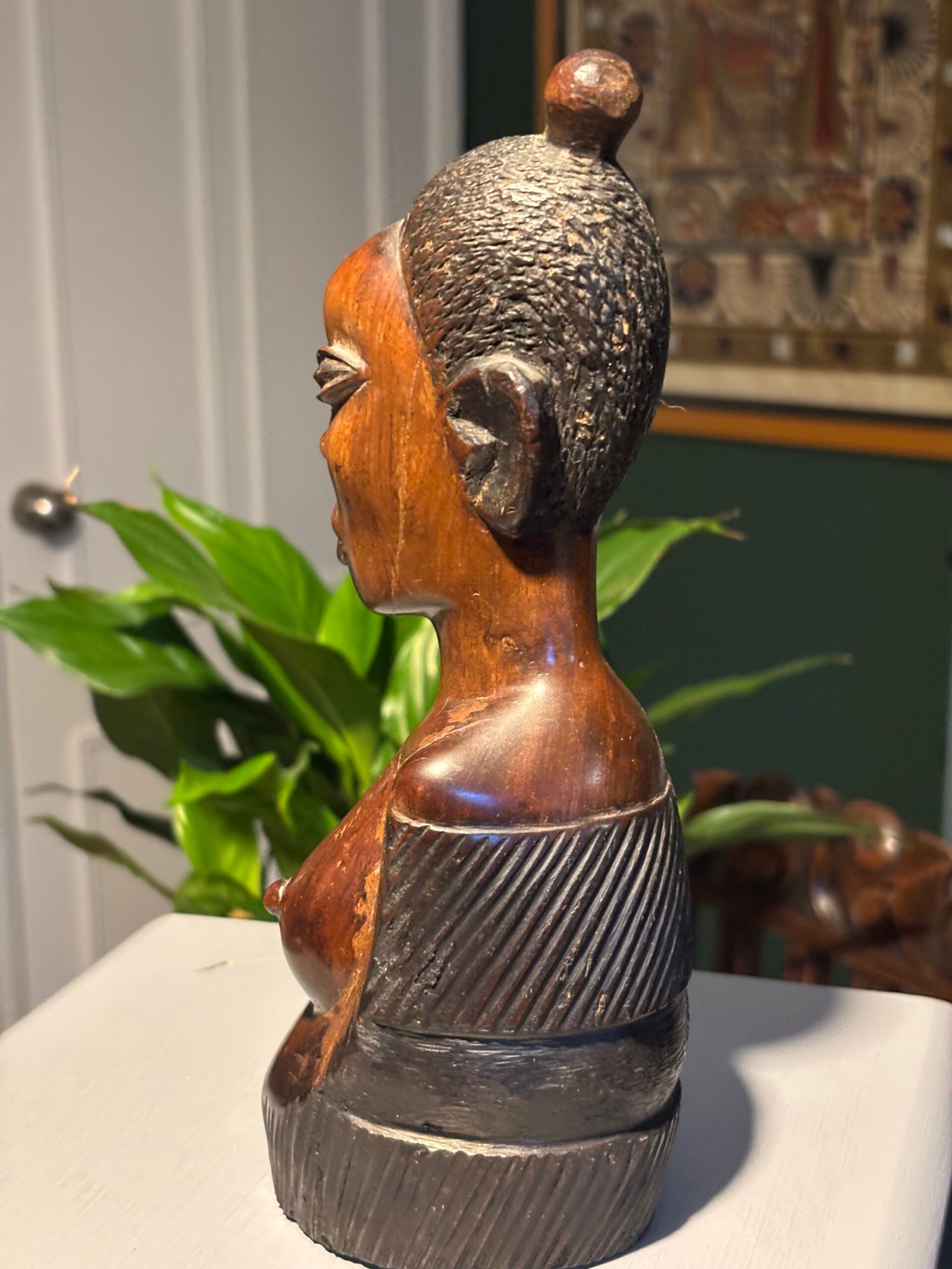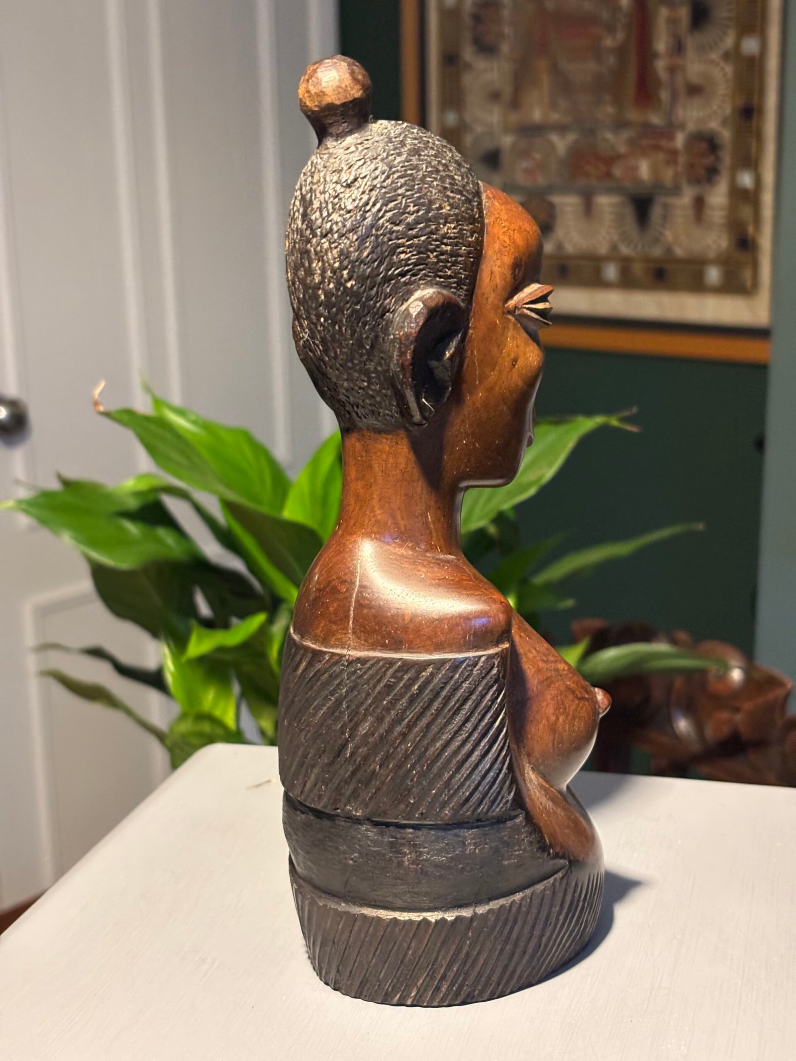 Vintage African woman, hand carved wooden bust.