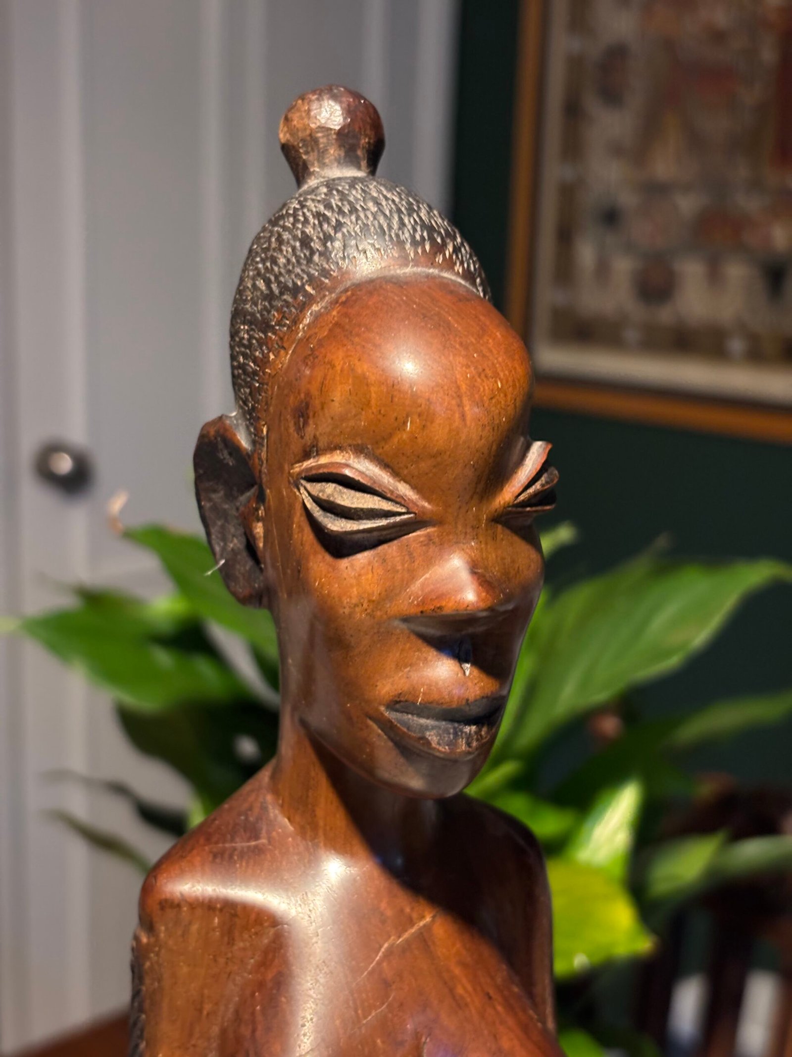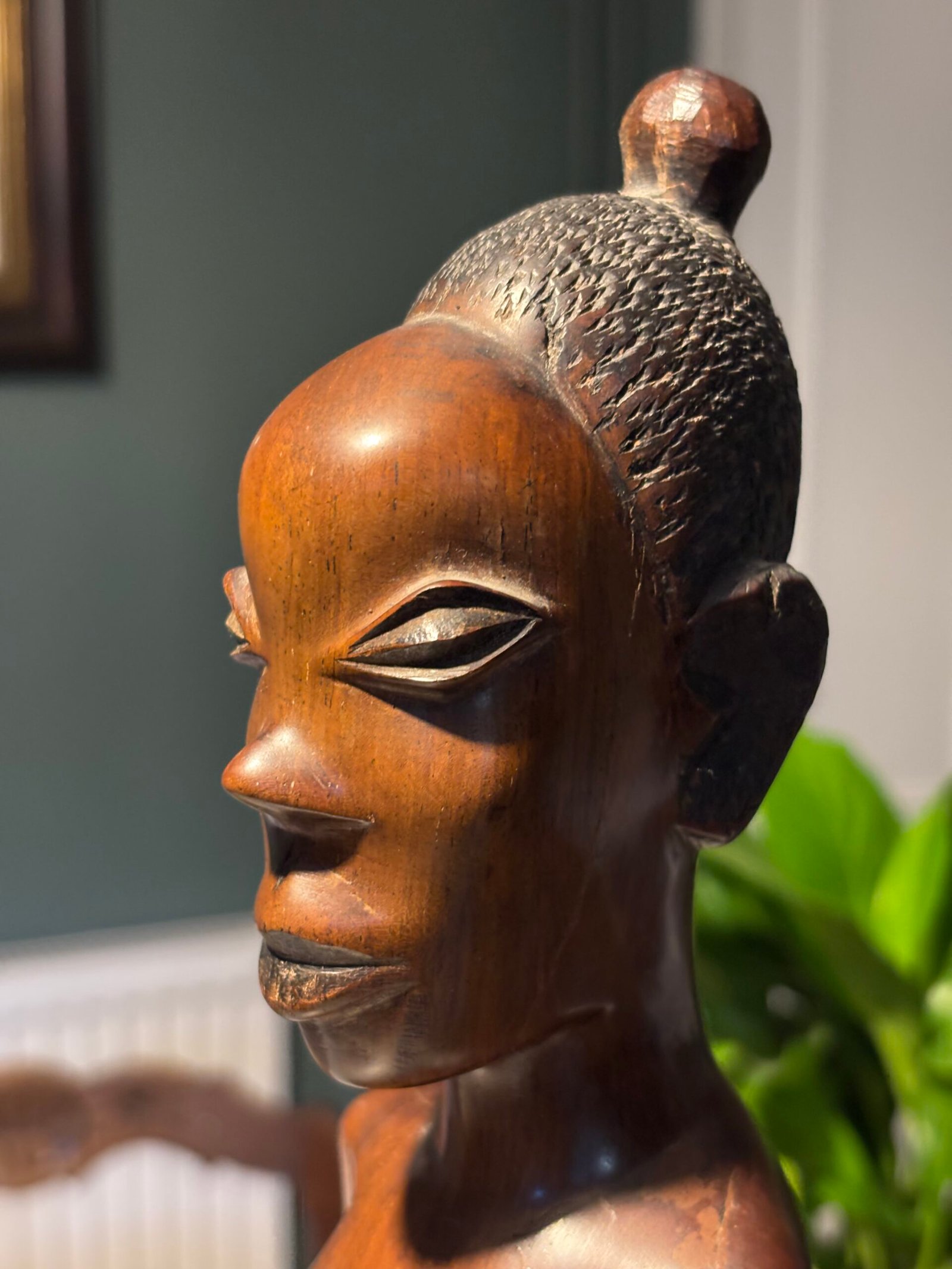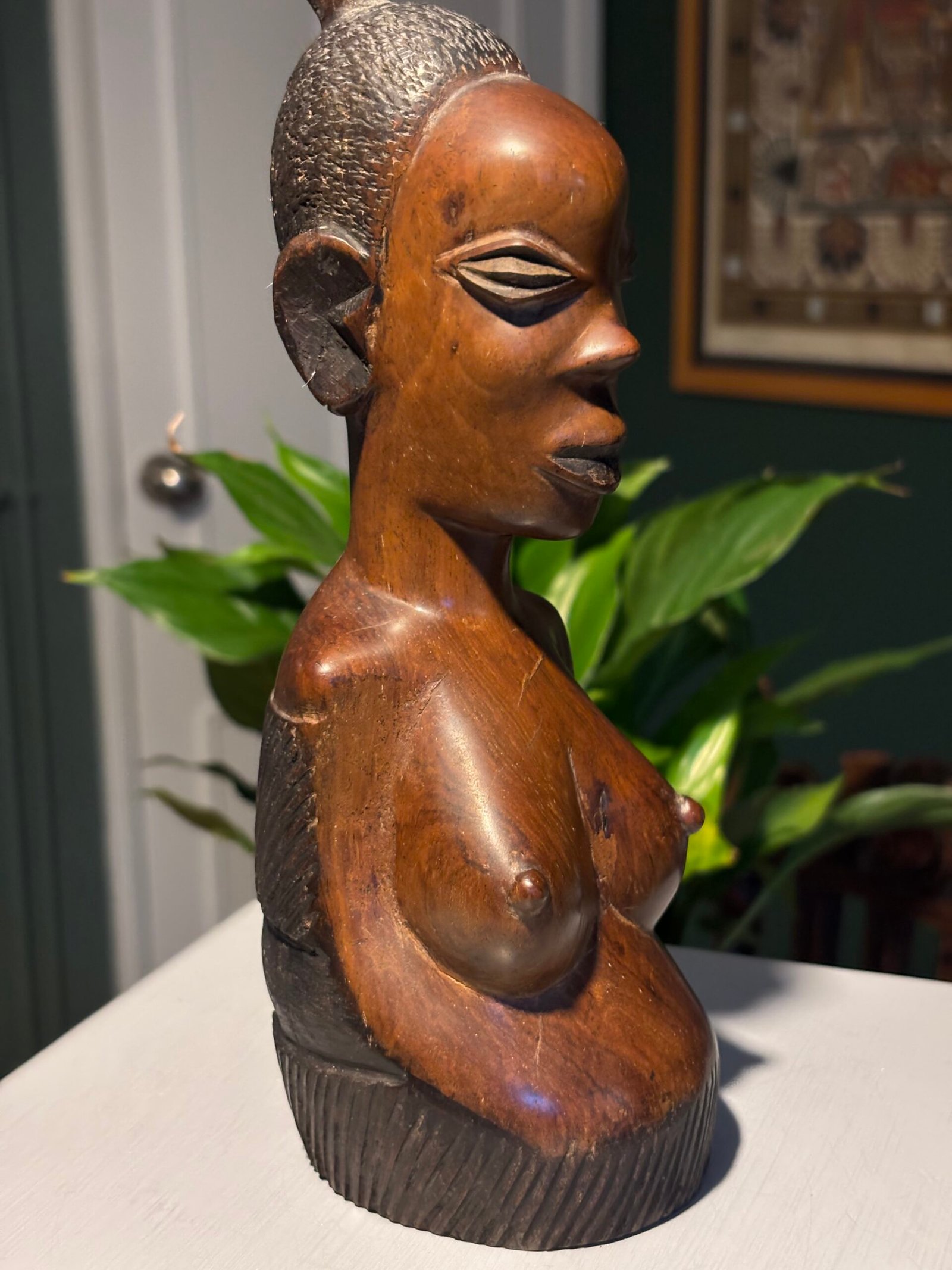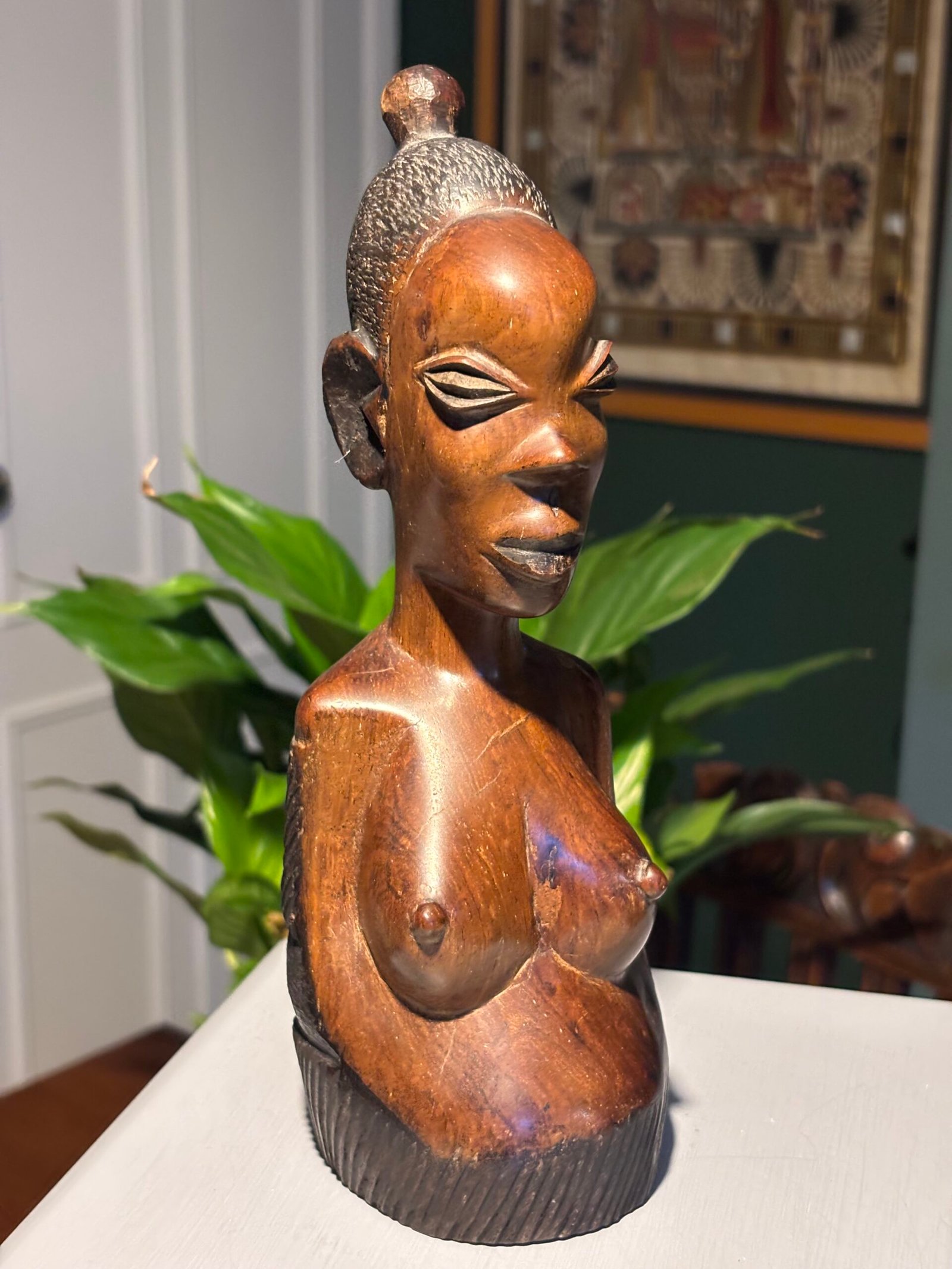 Vintage African woman, hand carved wooden bust.