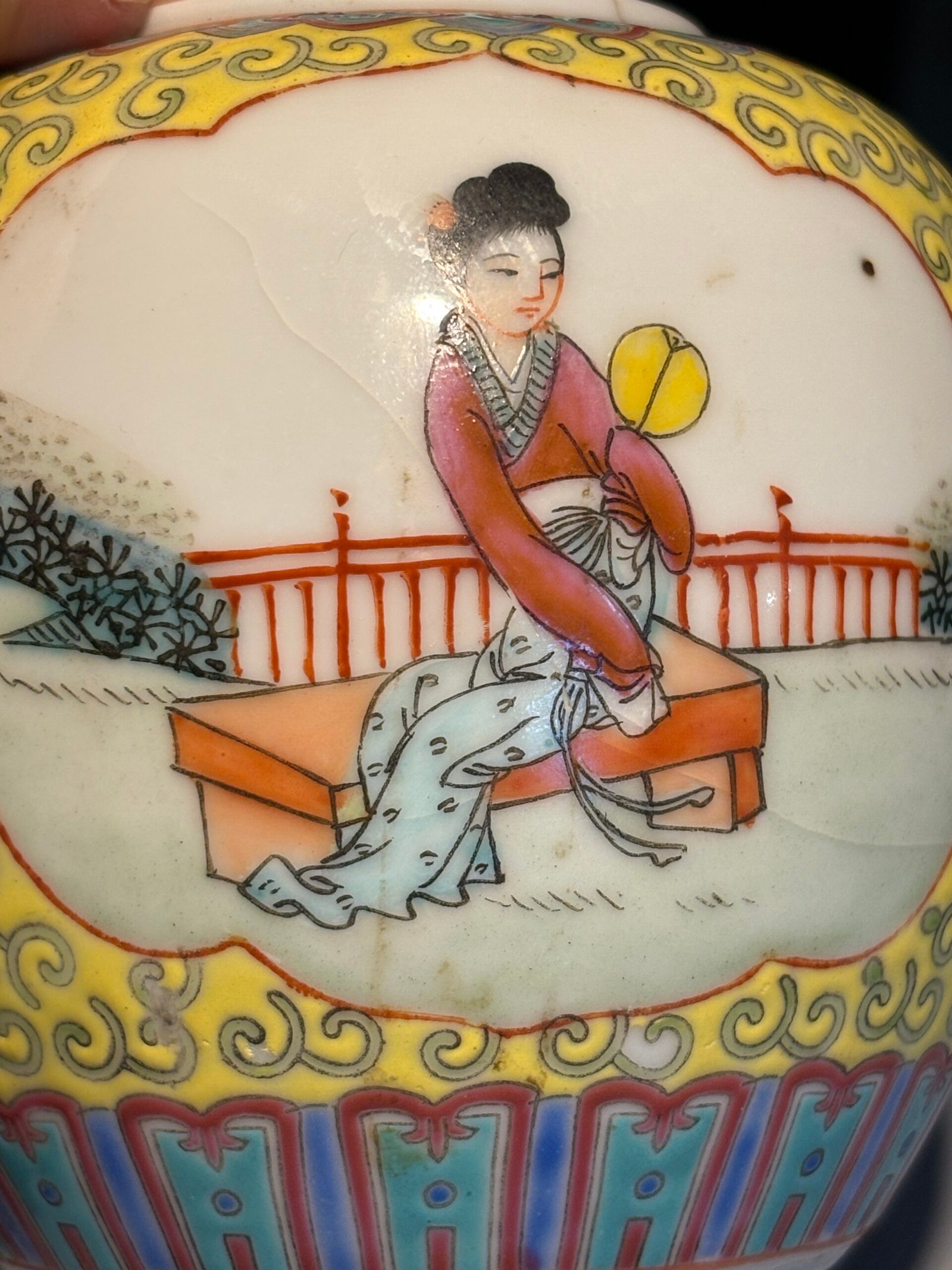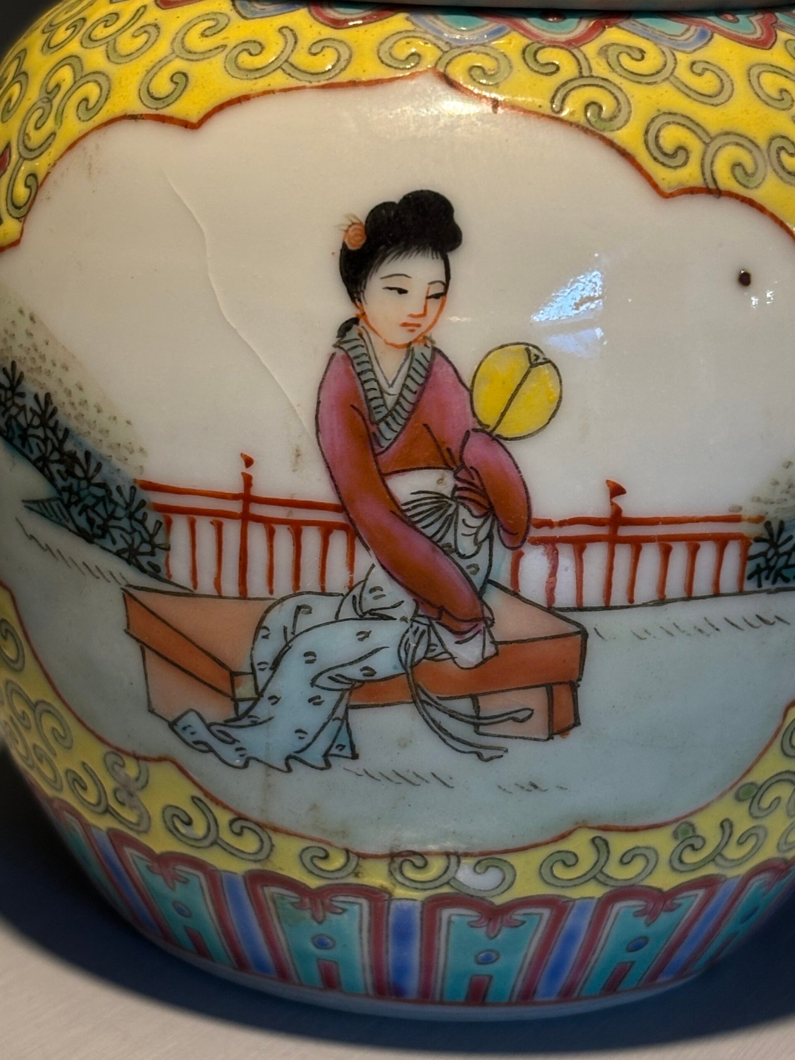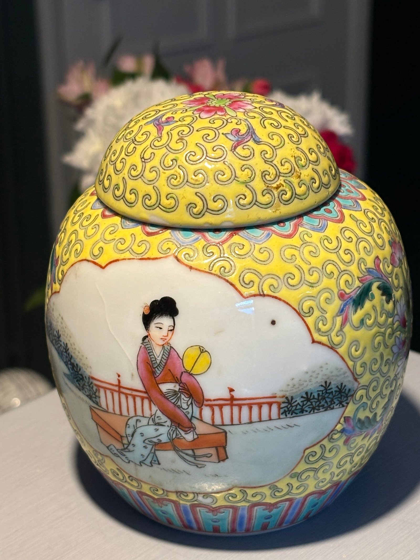 Vintage Chinese Famille Jaune Ginger Jar with Lid – Hand Painted “Boys at Play”
