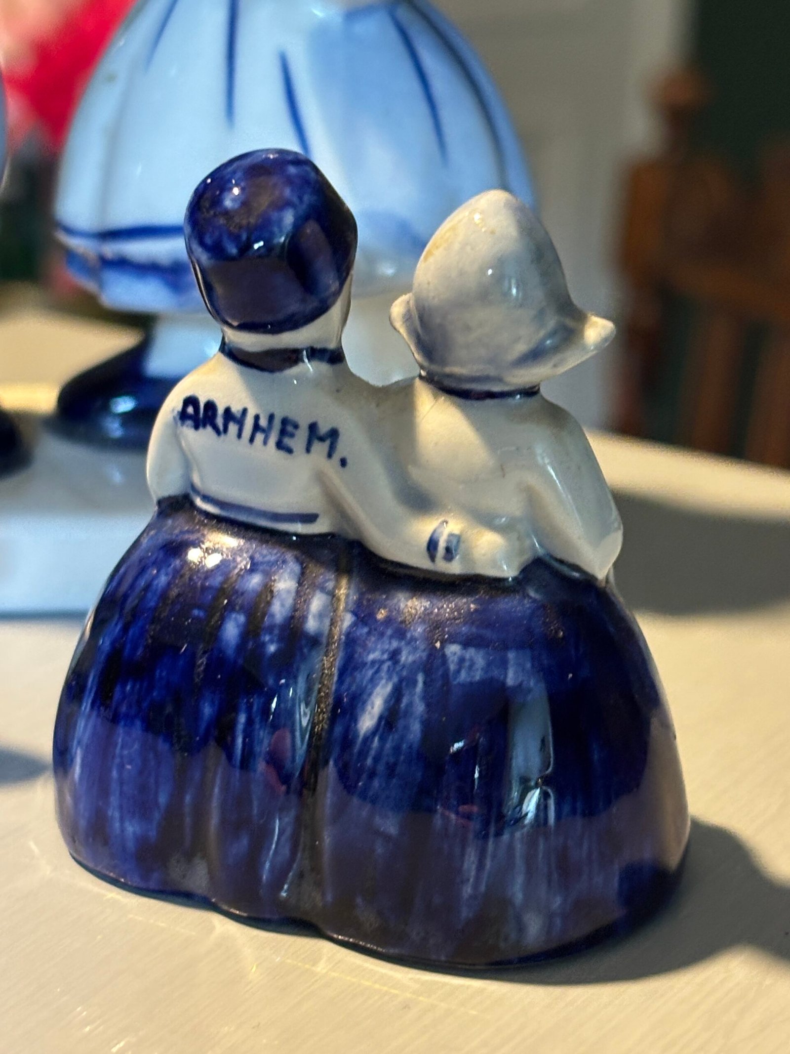 The pieces feature the traditional cobalt blue hand-painted style, depicting a young boy and girl in classic Dutch attire.
