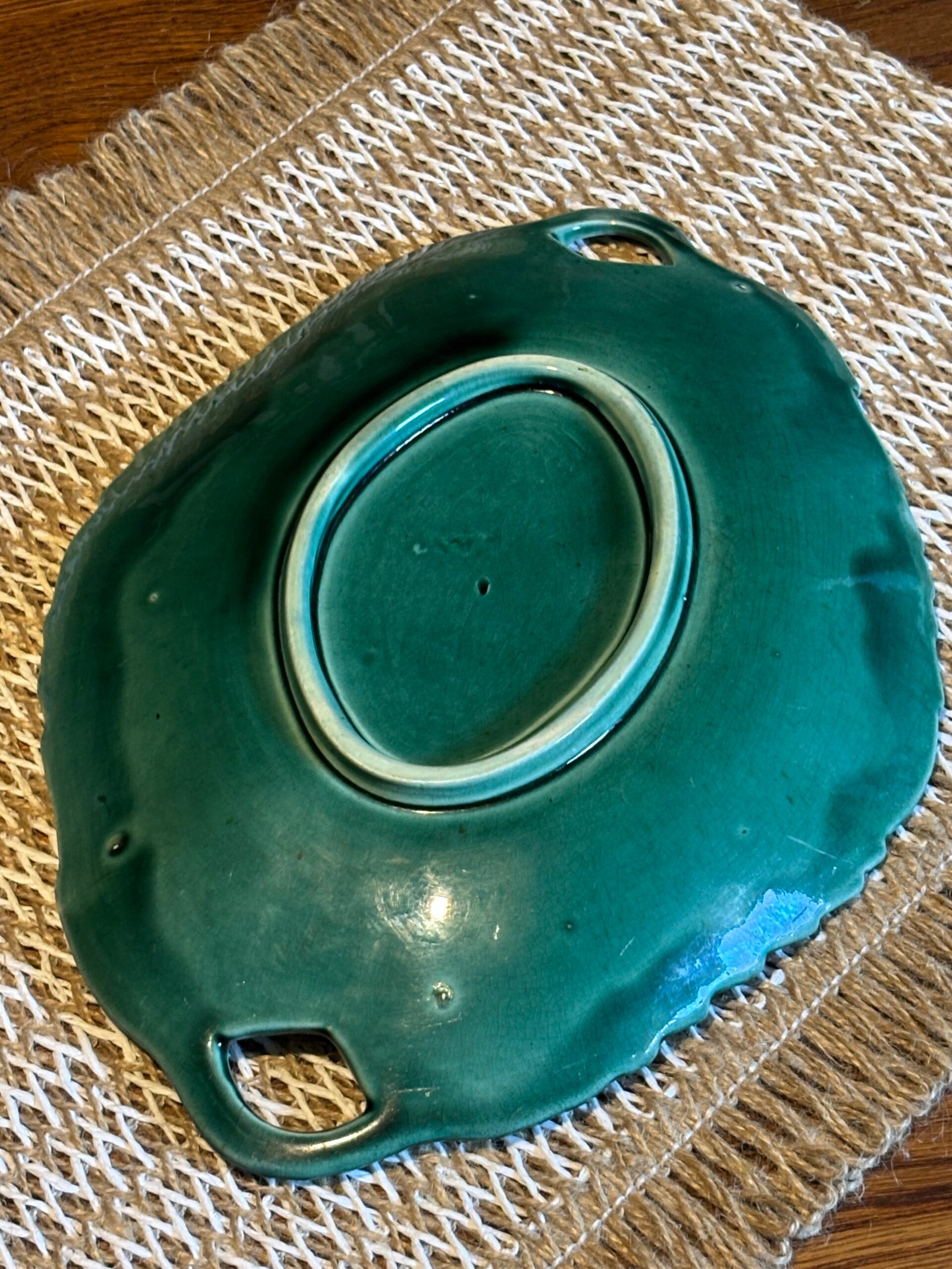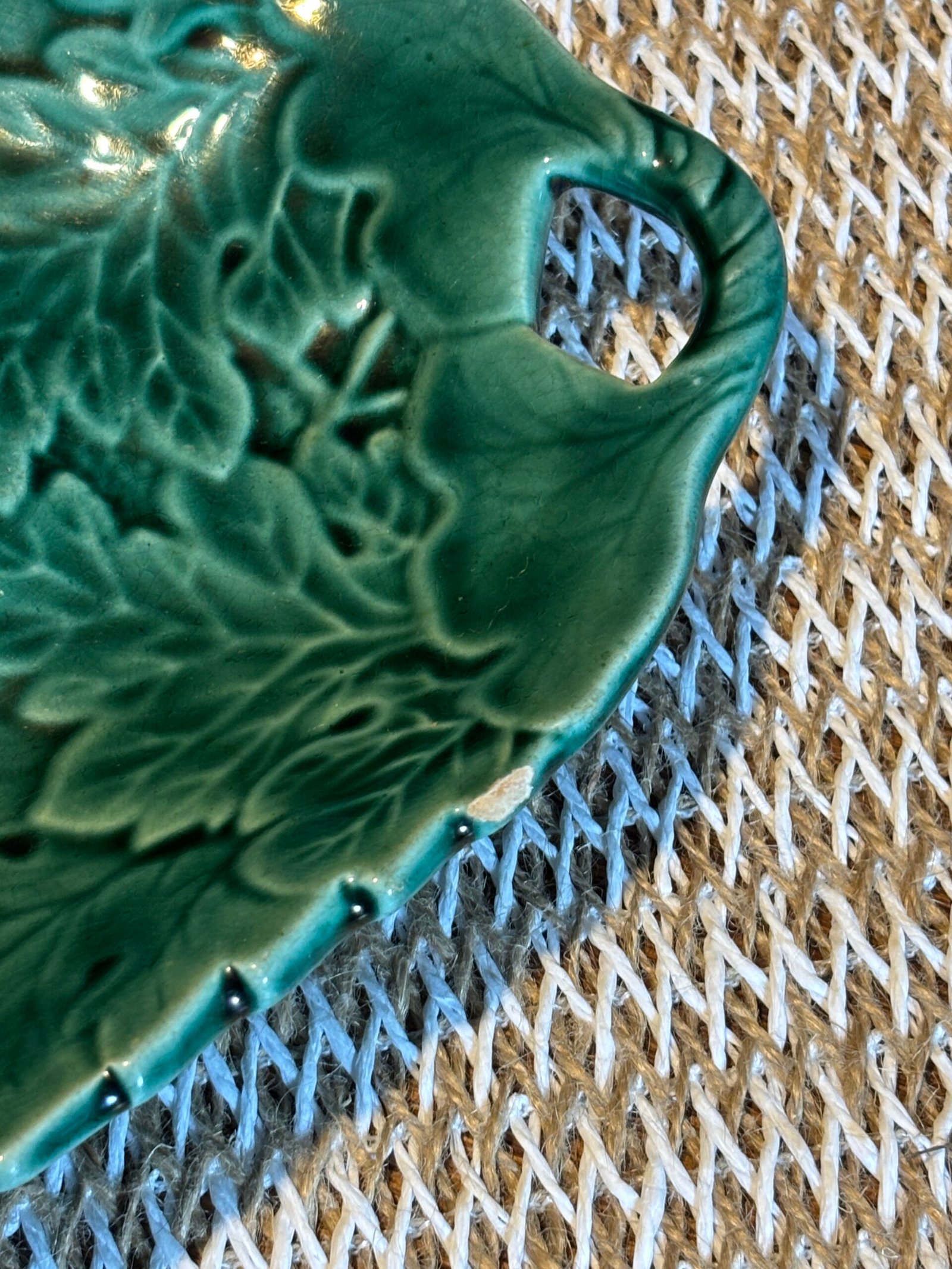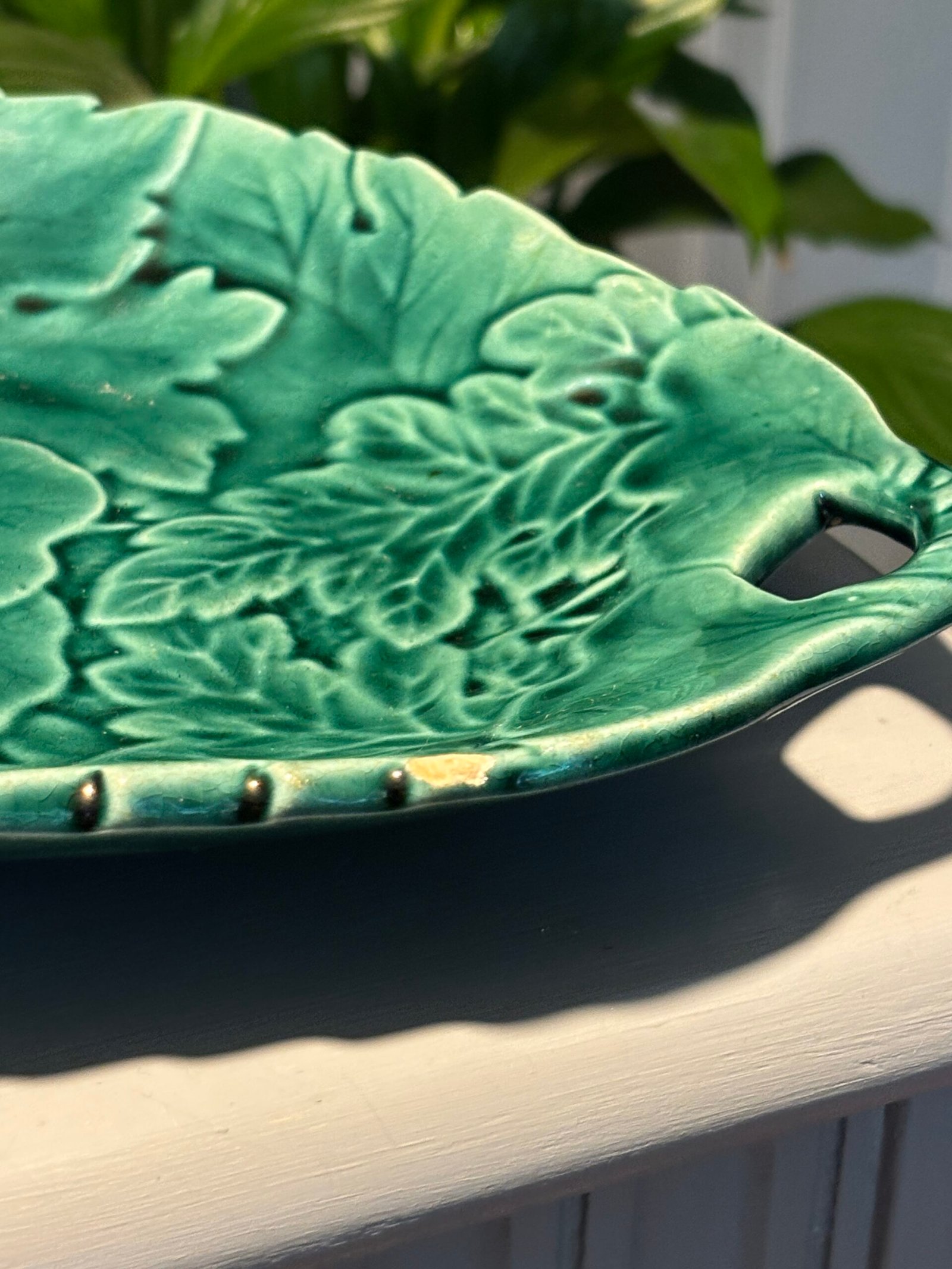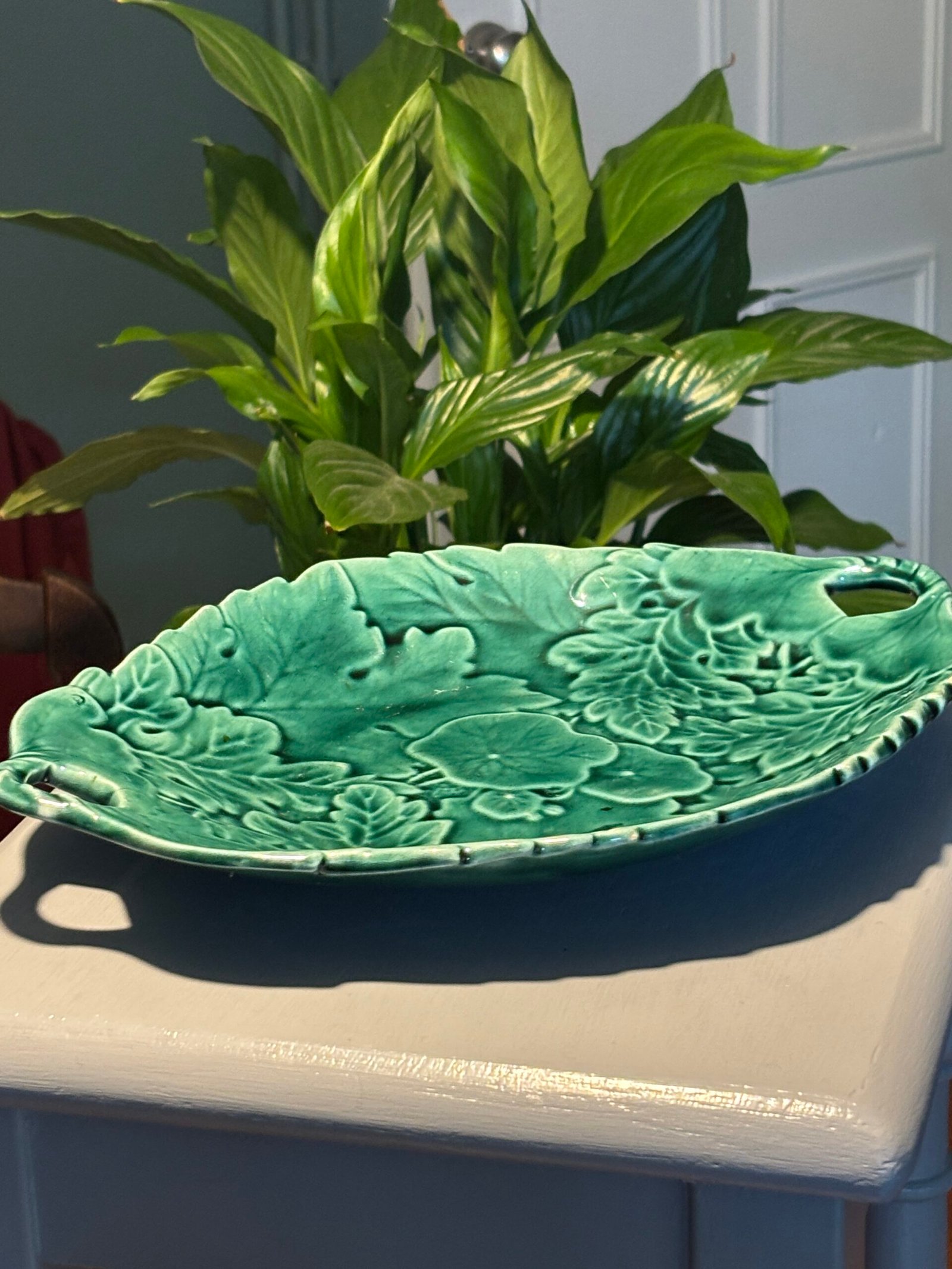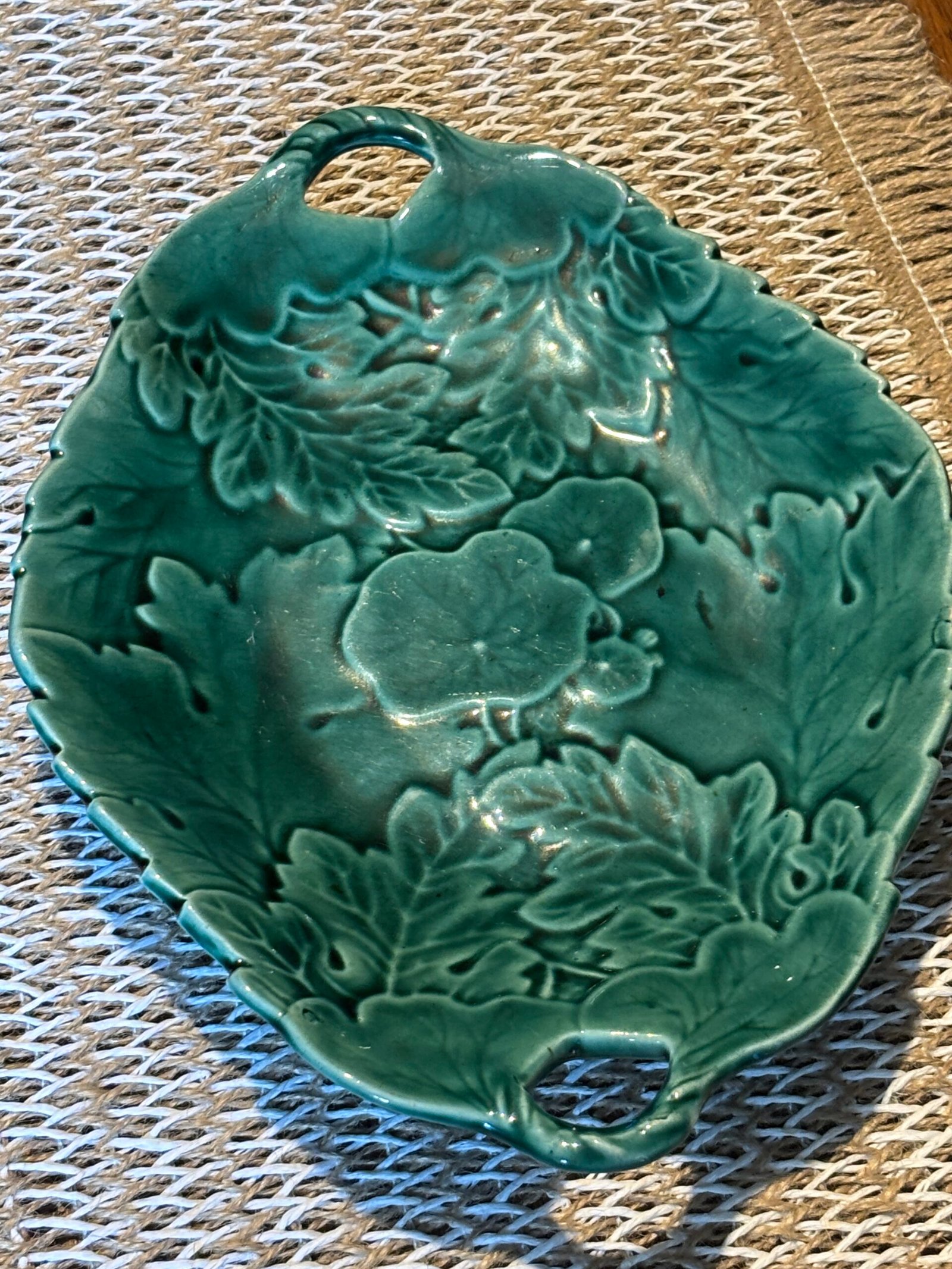 Vintage Emerald Green Majolica Leaf Serving Dish.