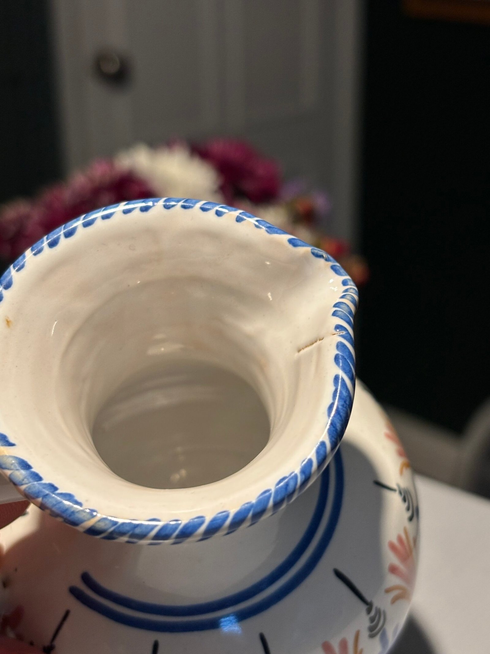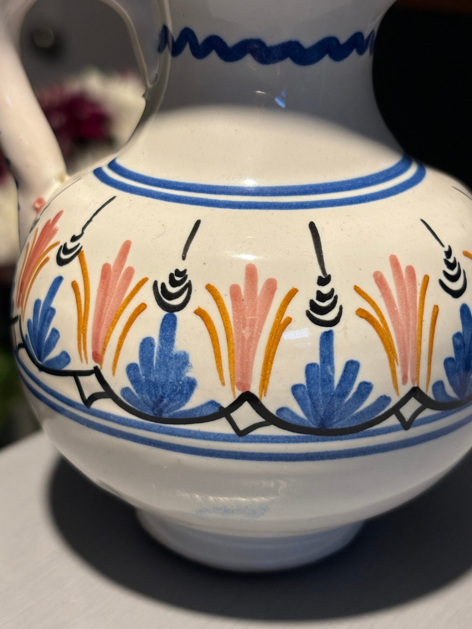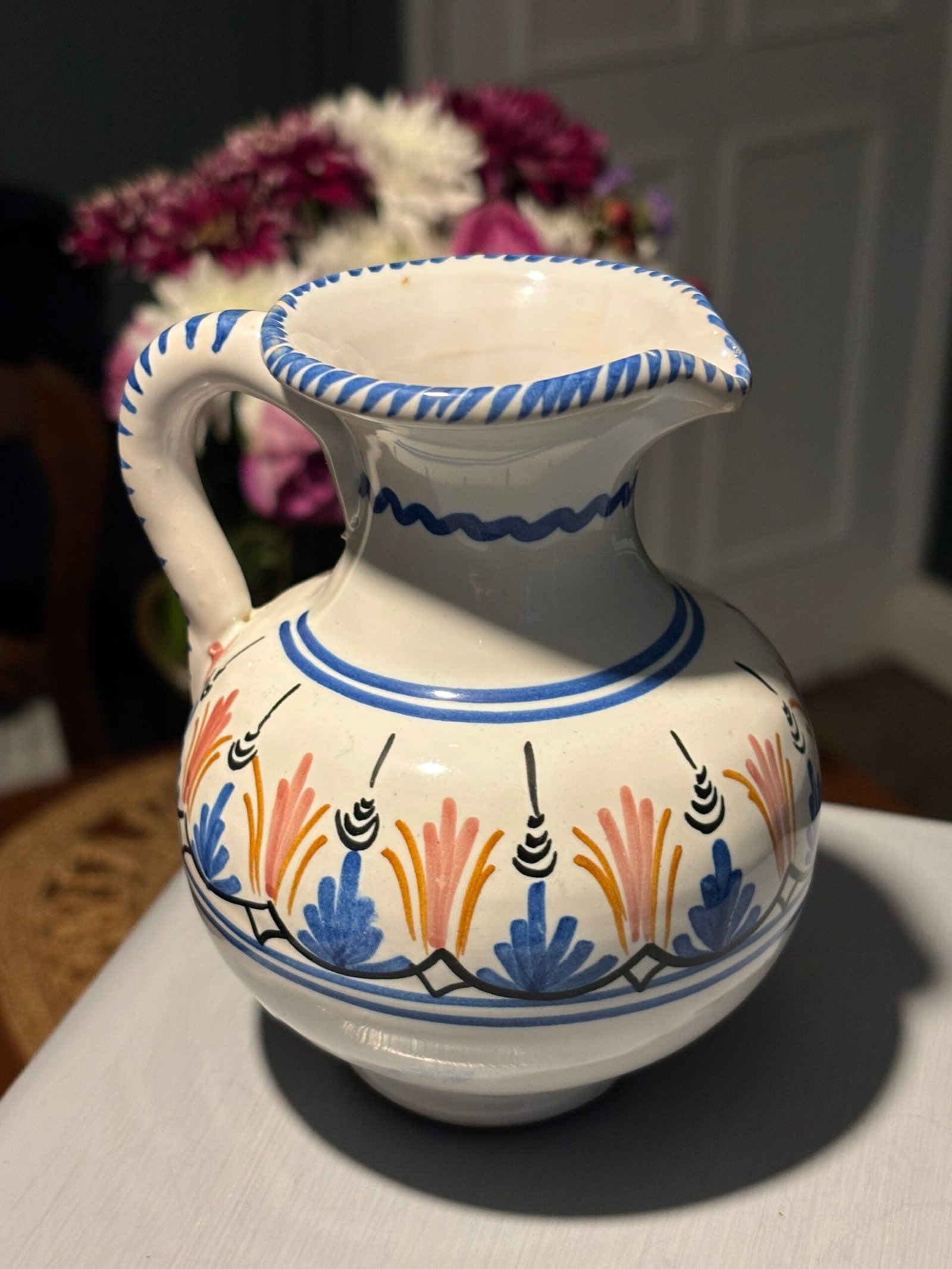 Vintage hand-painted, Spanish style studio pottery ceramic miniature jug.Availability: 1 in stock