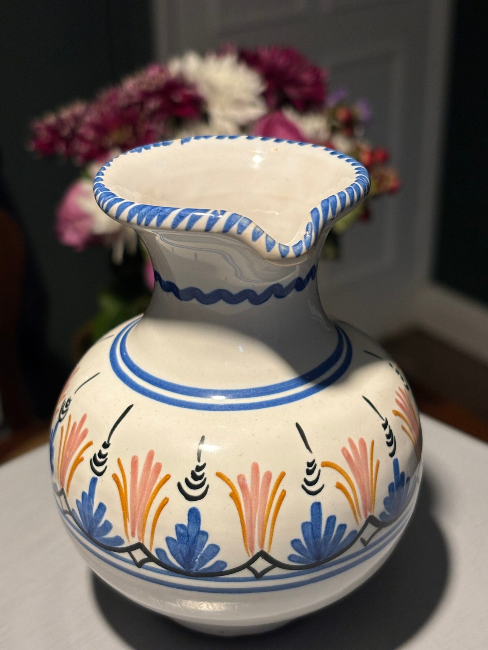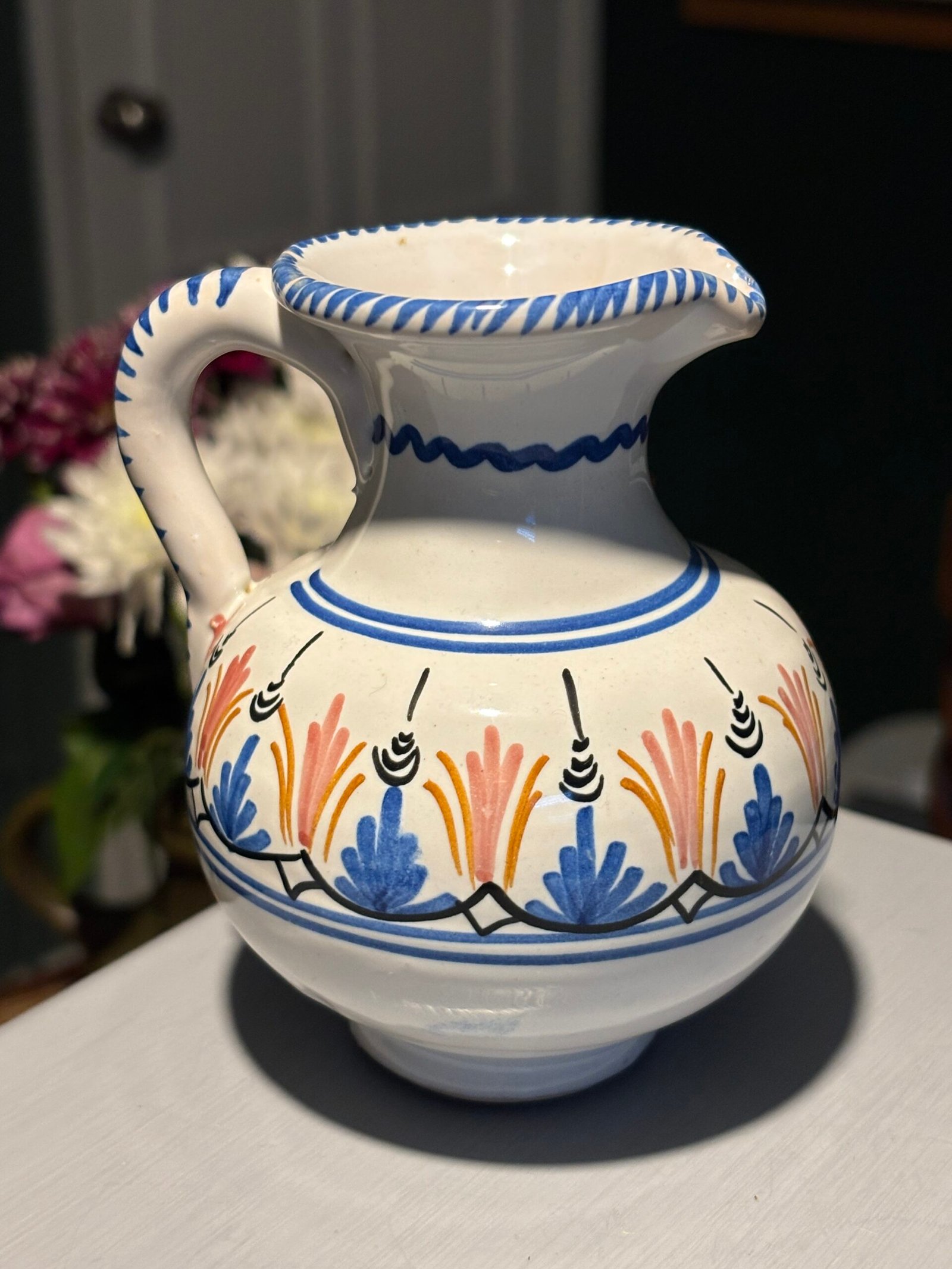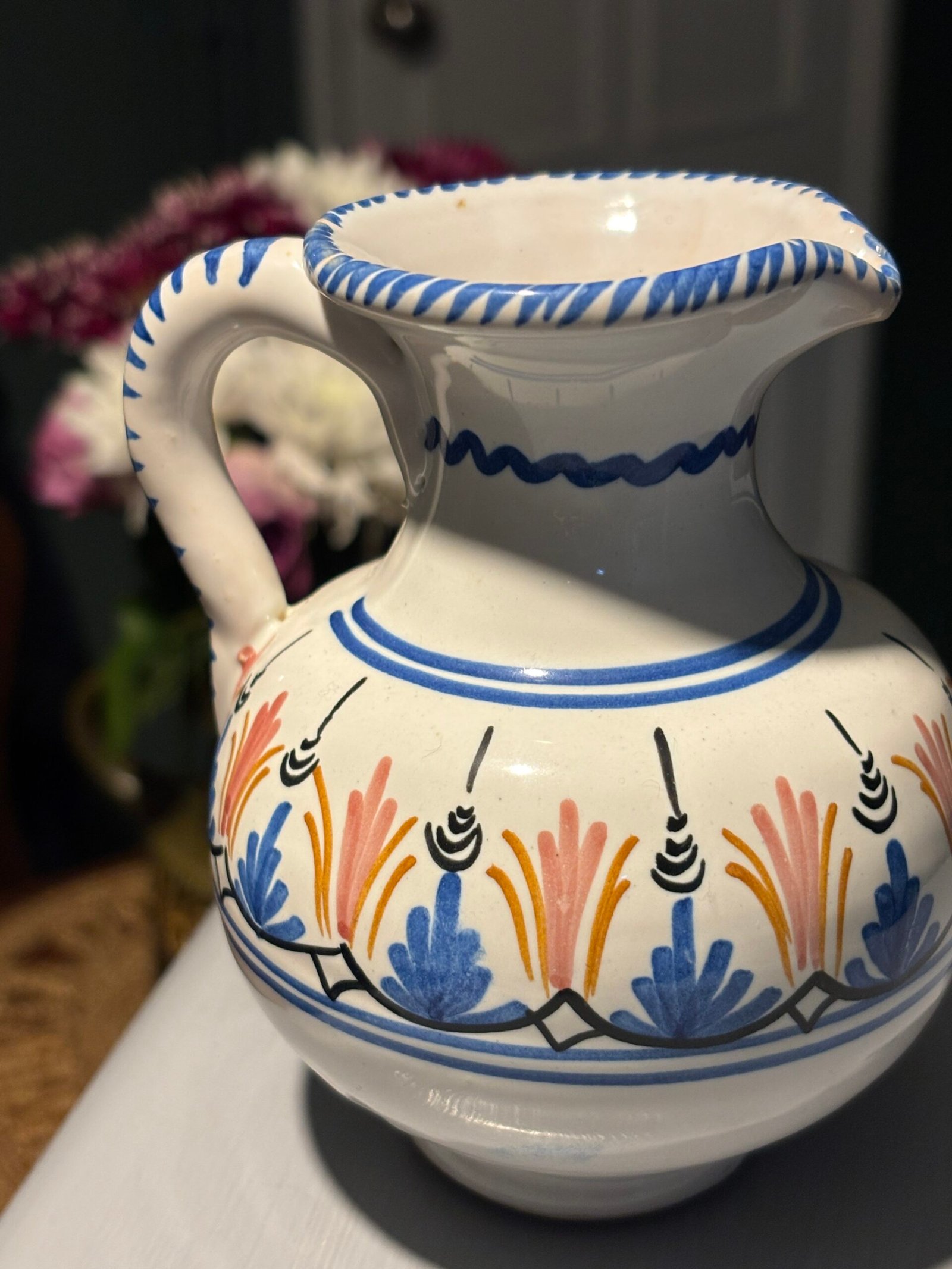 Vintage hand-painted, Spanish style studio pottery ceramic miniature jug.