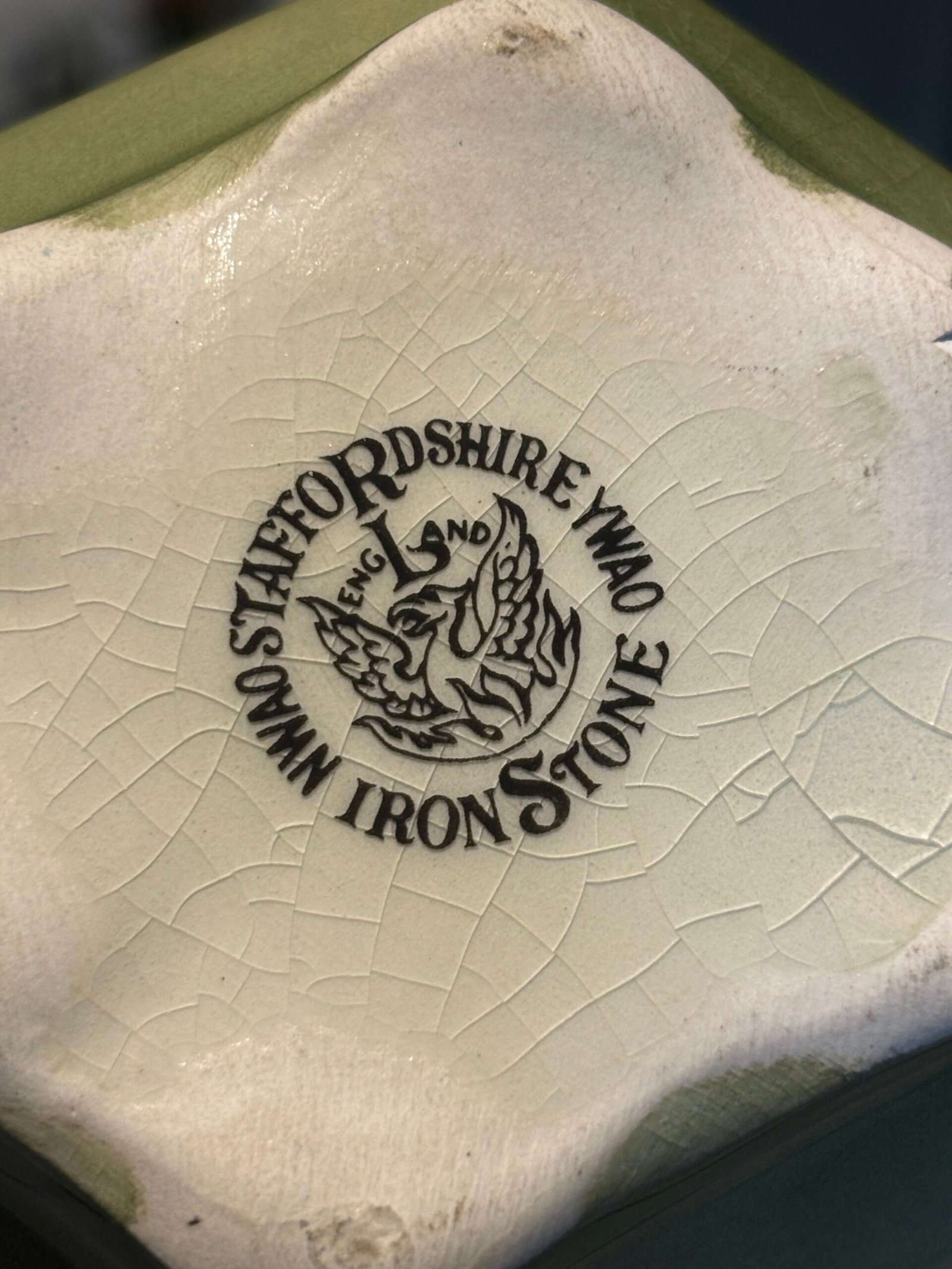 It has a lovely aged character with visible crazing (fine lines in the glaze) that adds to its vintage aesthetic. Great for collectors of Staffordshire pottery.