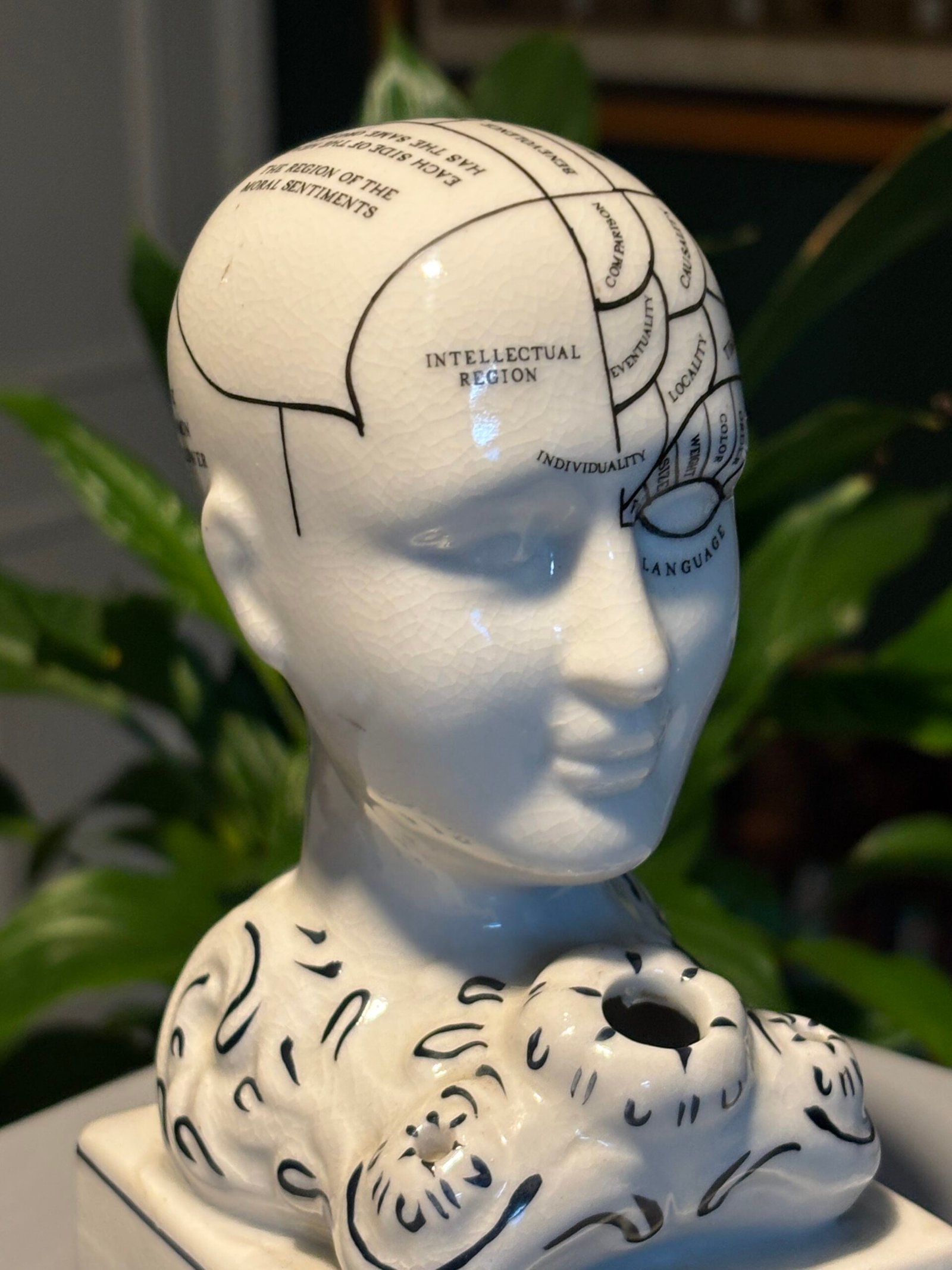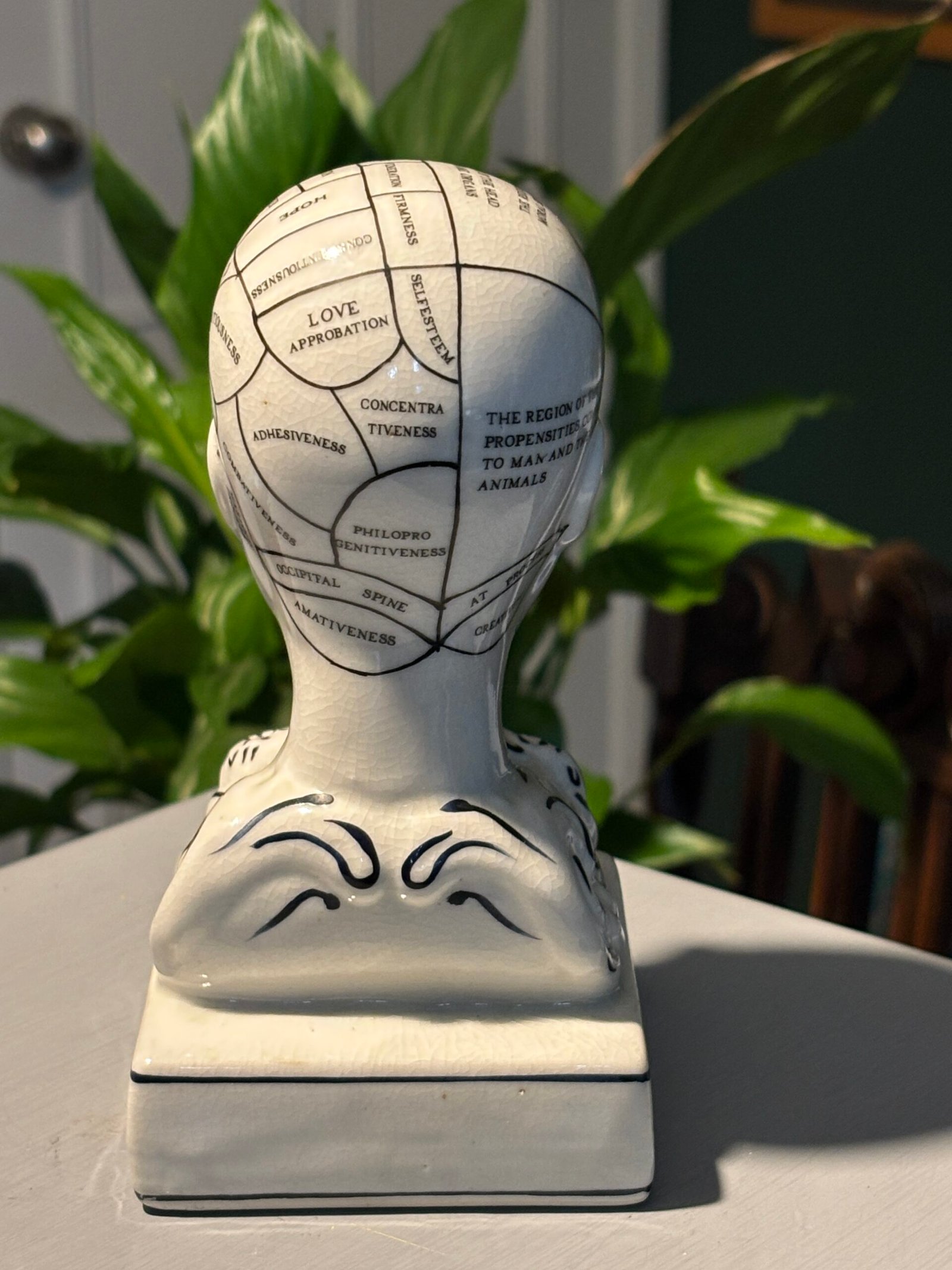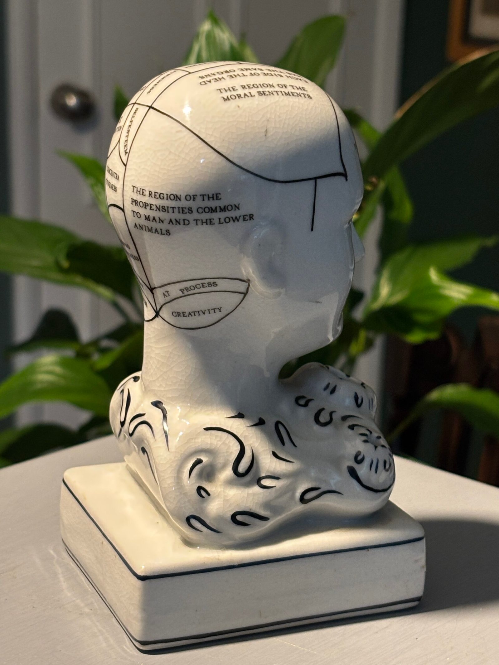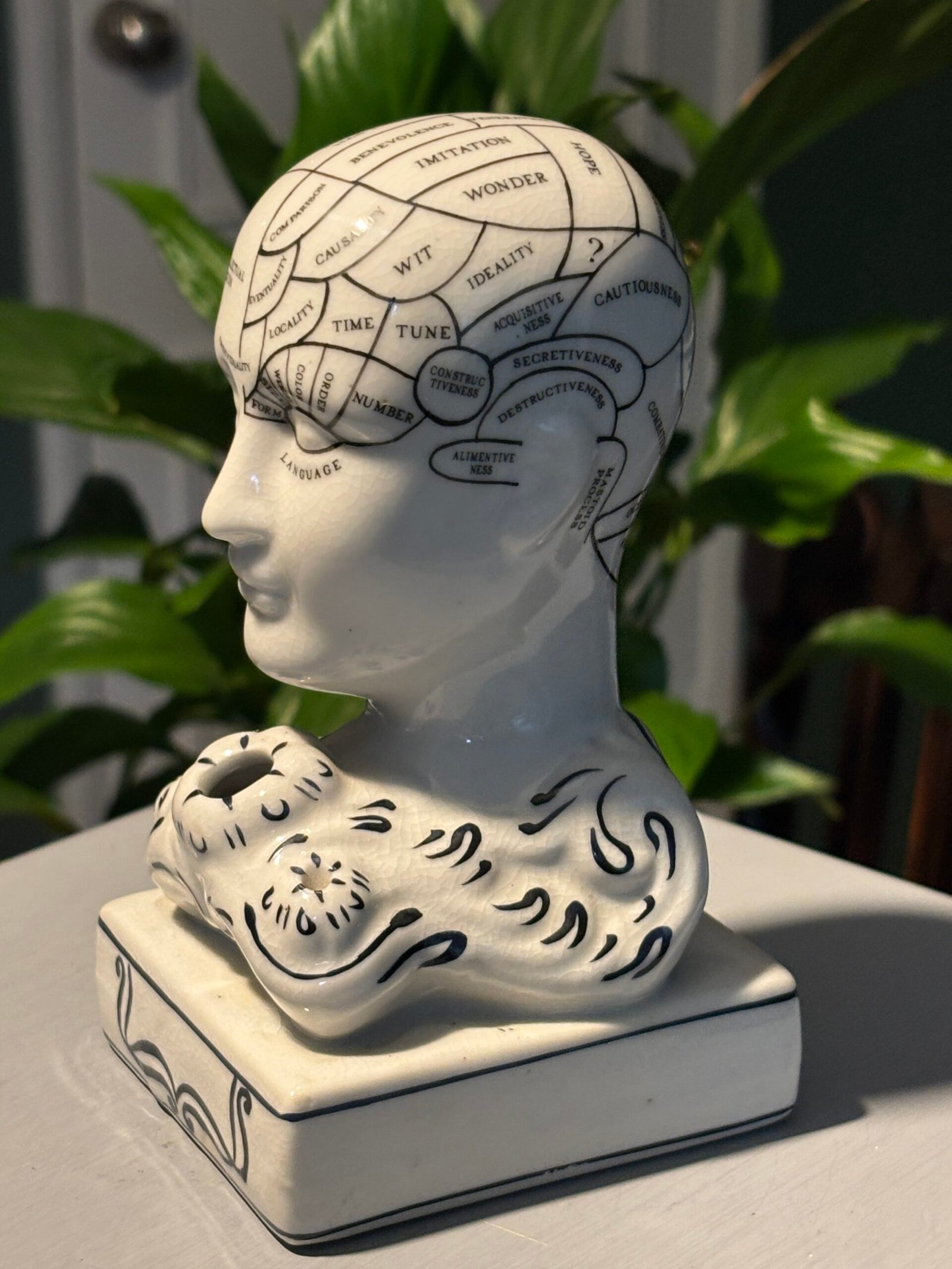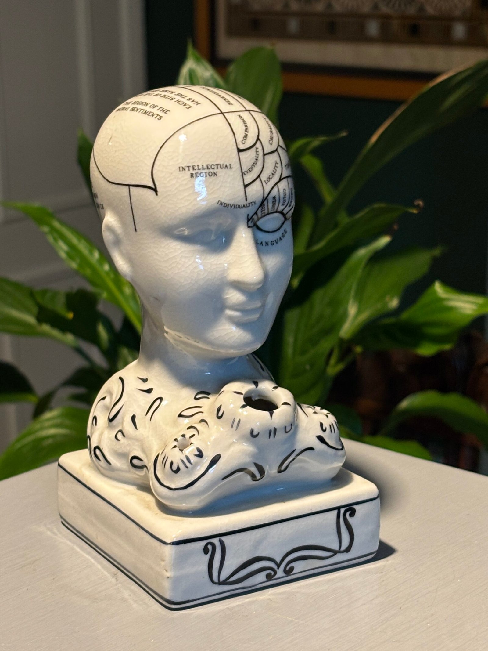 Perfect for a bookshelf, desk, or as a unique statement piece for fans of the dark academia or gothic aesthetic. Possibly a pen holder or inkwell. Material: High-quality glazed ceramic/porcelain. Finish: Features a lovely “crackle” glaze (crazing) that gives it an authentic antique feel.