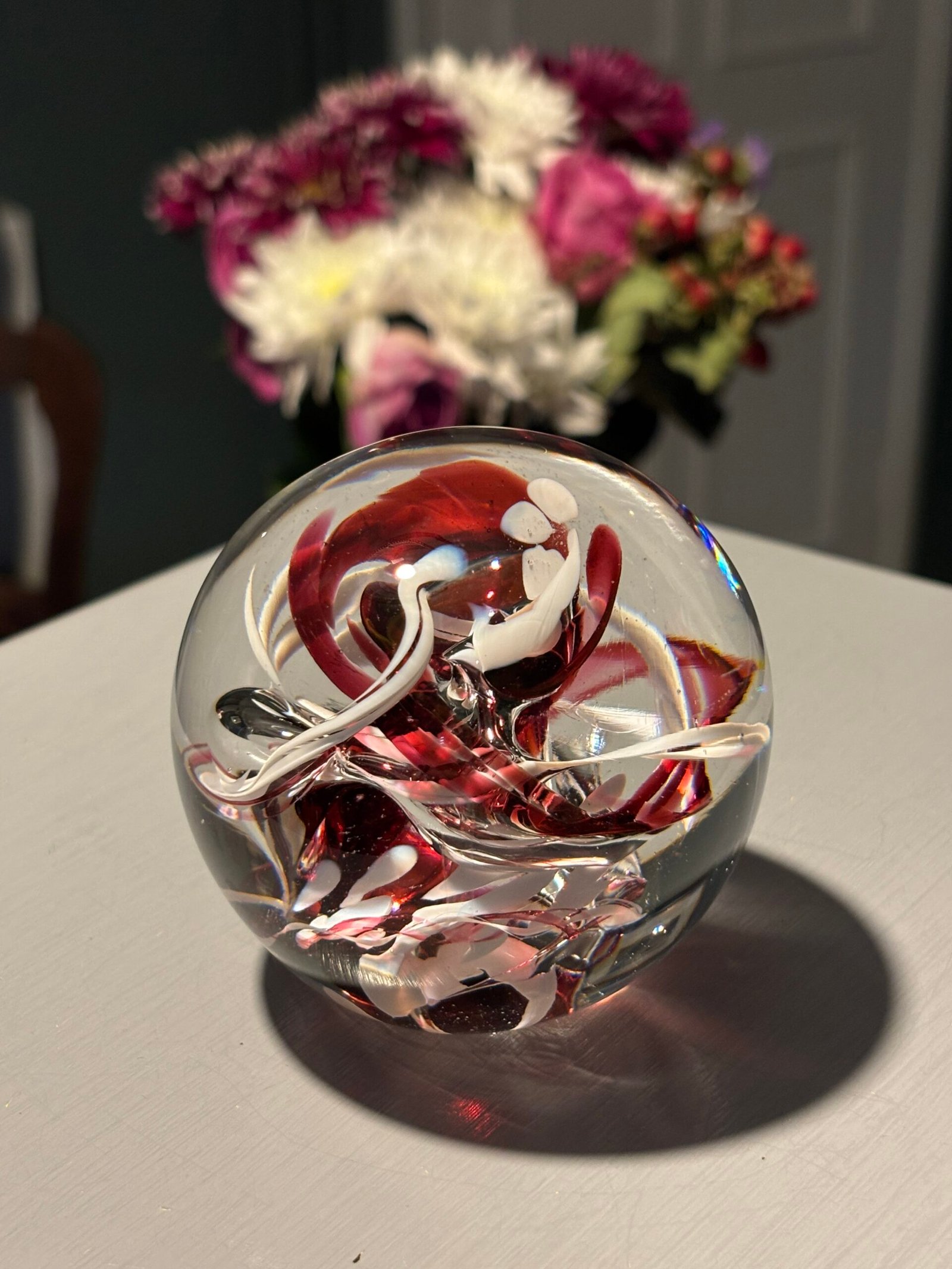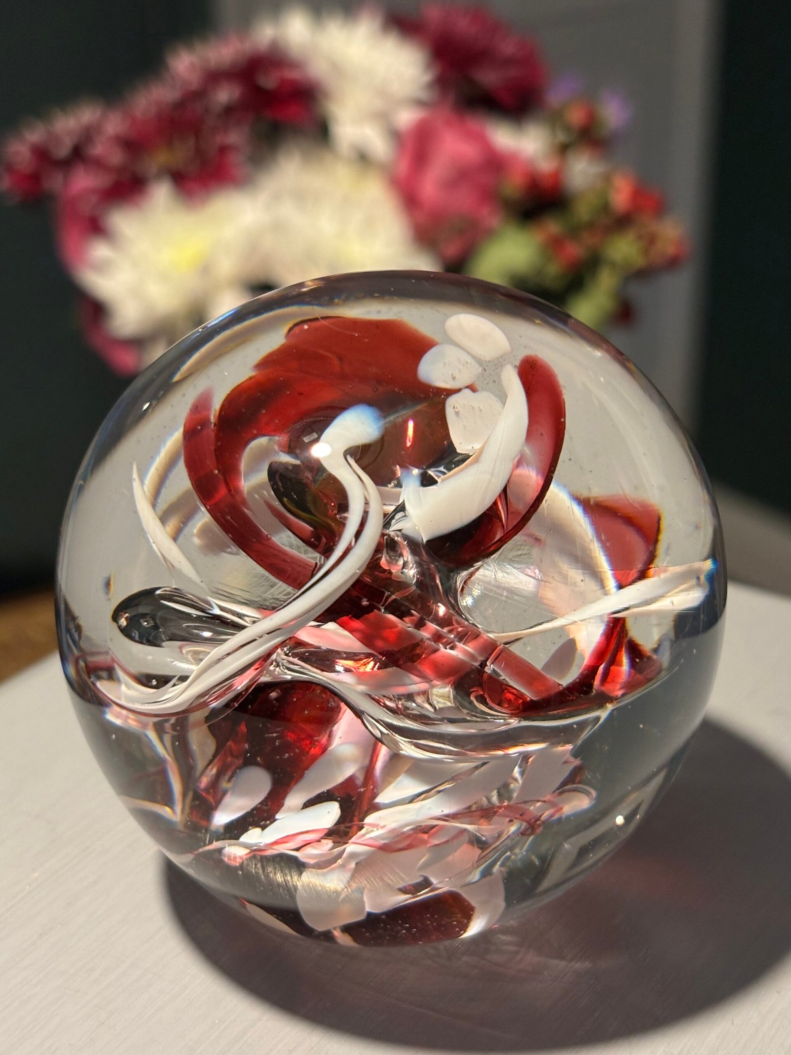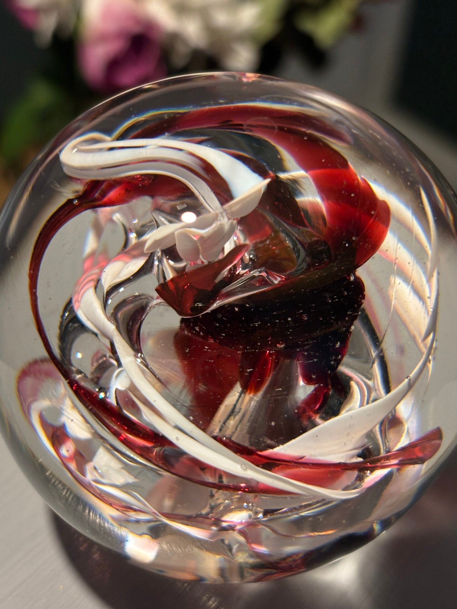 Vintage Studio Glass Paperweight, Hand Blown Lamp work Colourful Swirl.