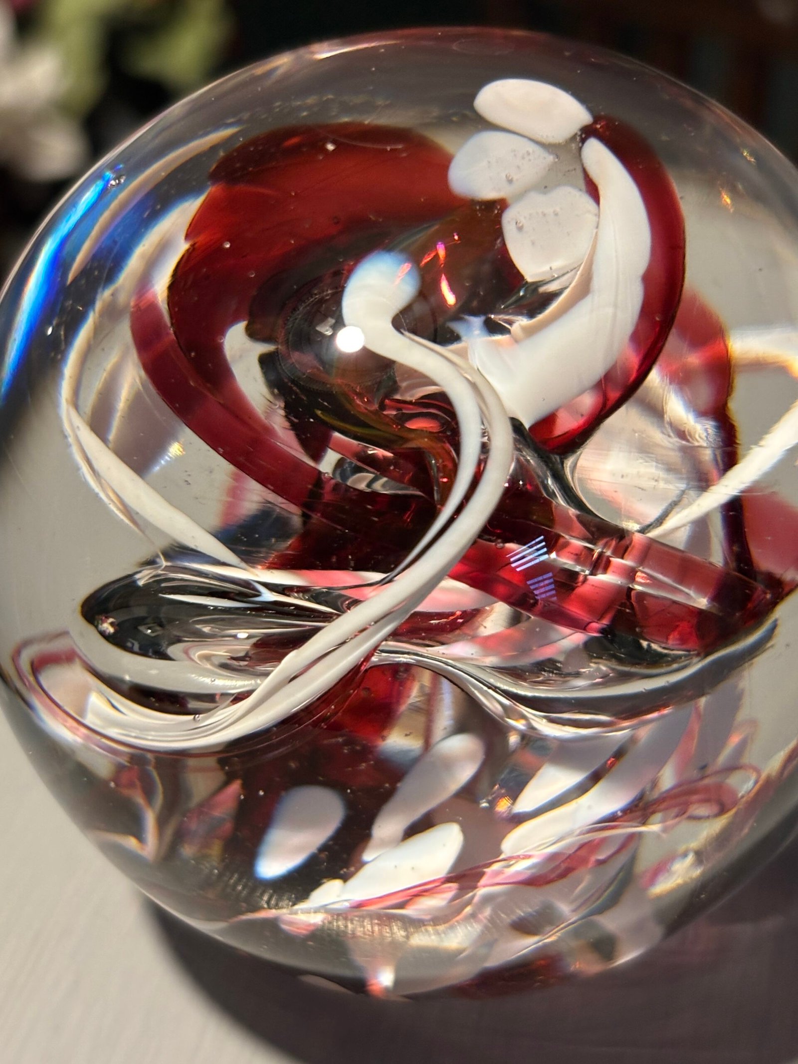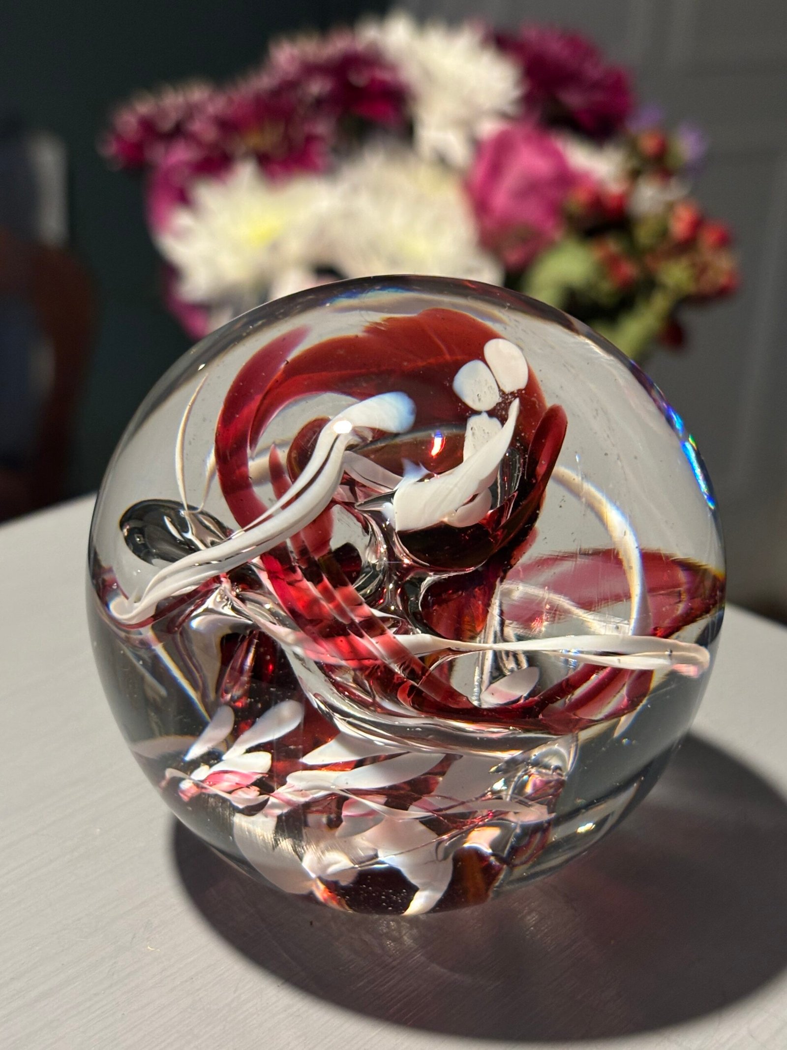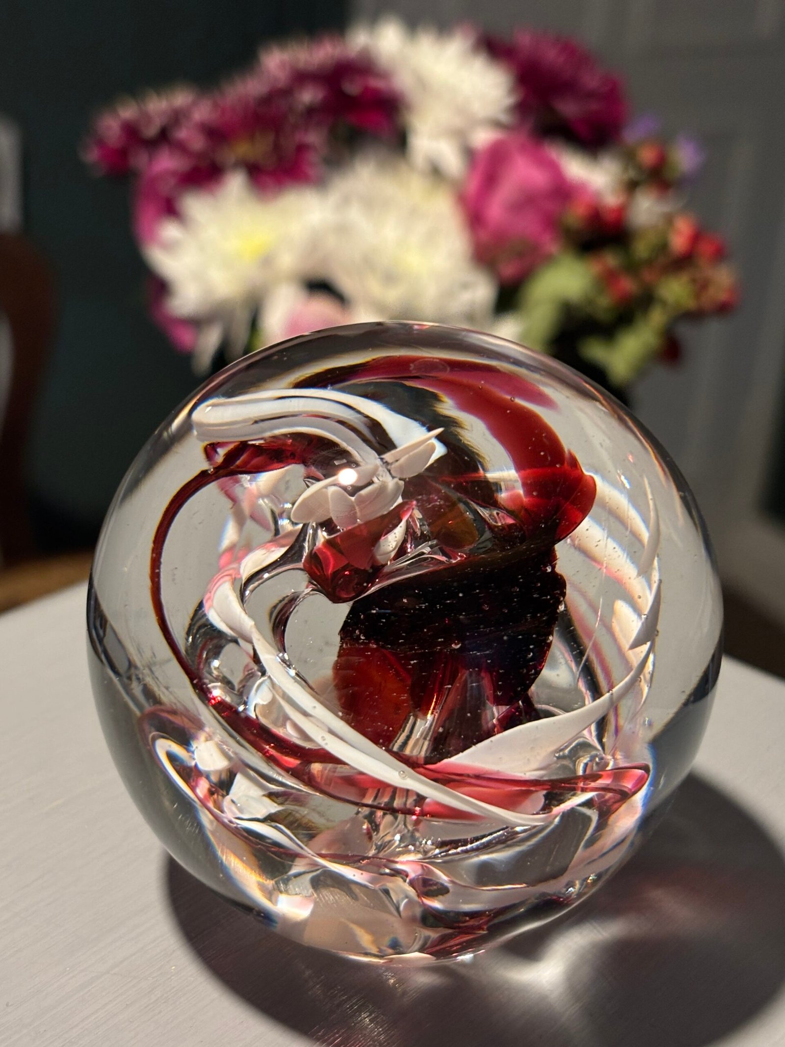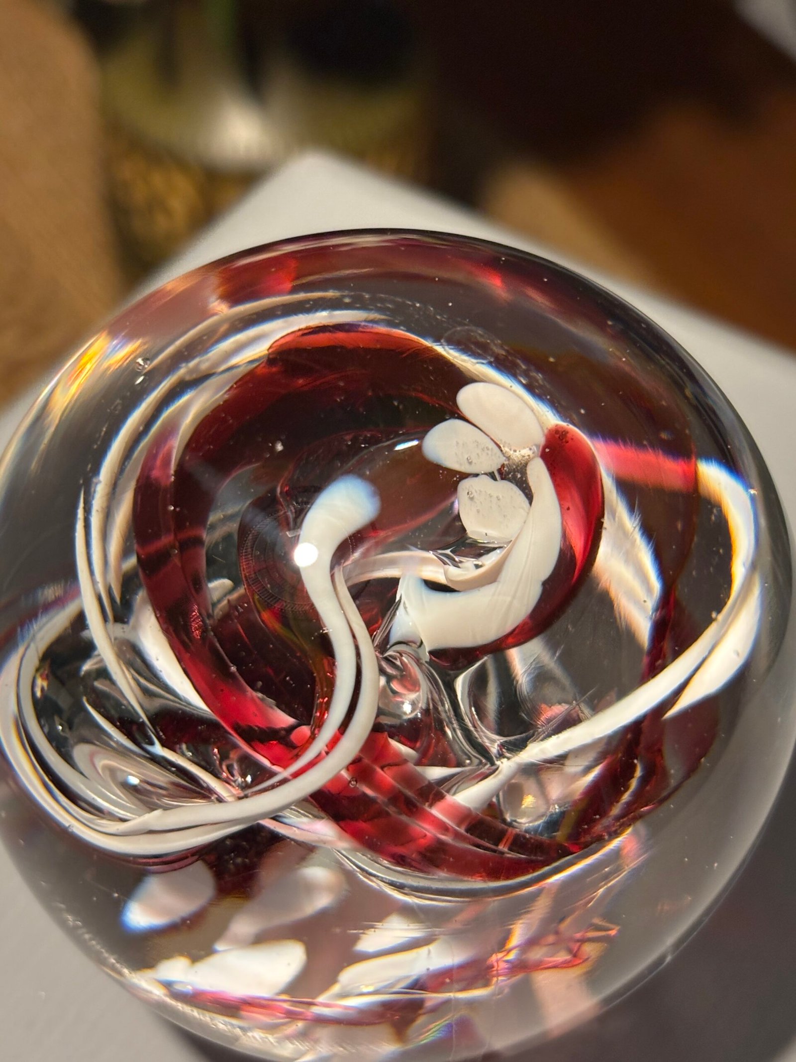 Vintage Studio Glass Paperweight, Hand Blown Lamp work Colourful Swirl.