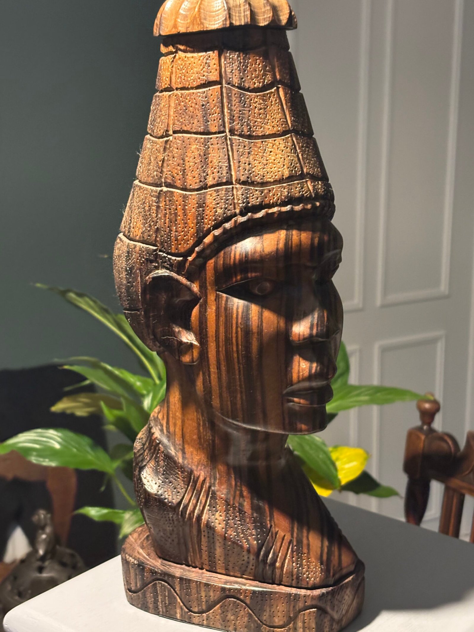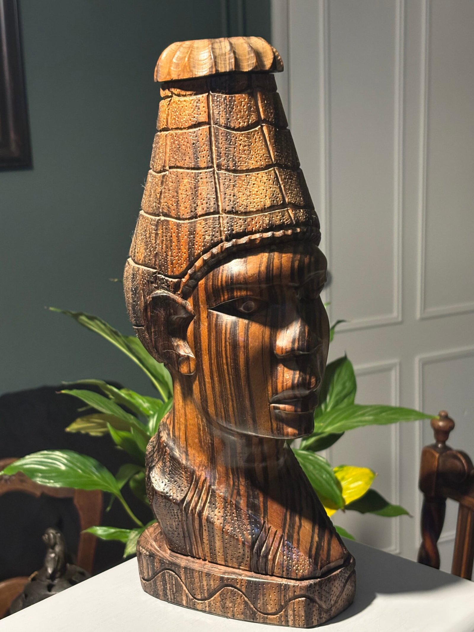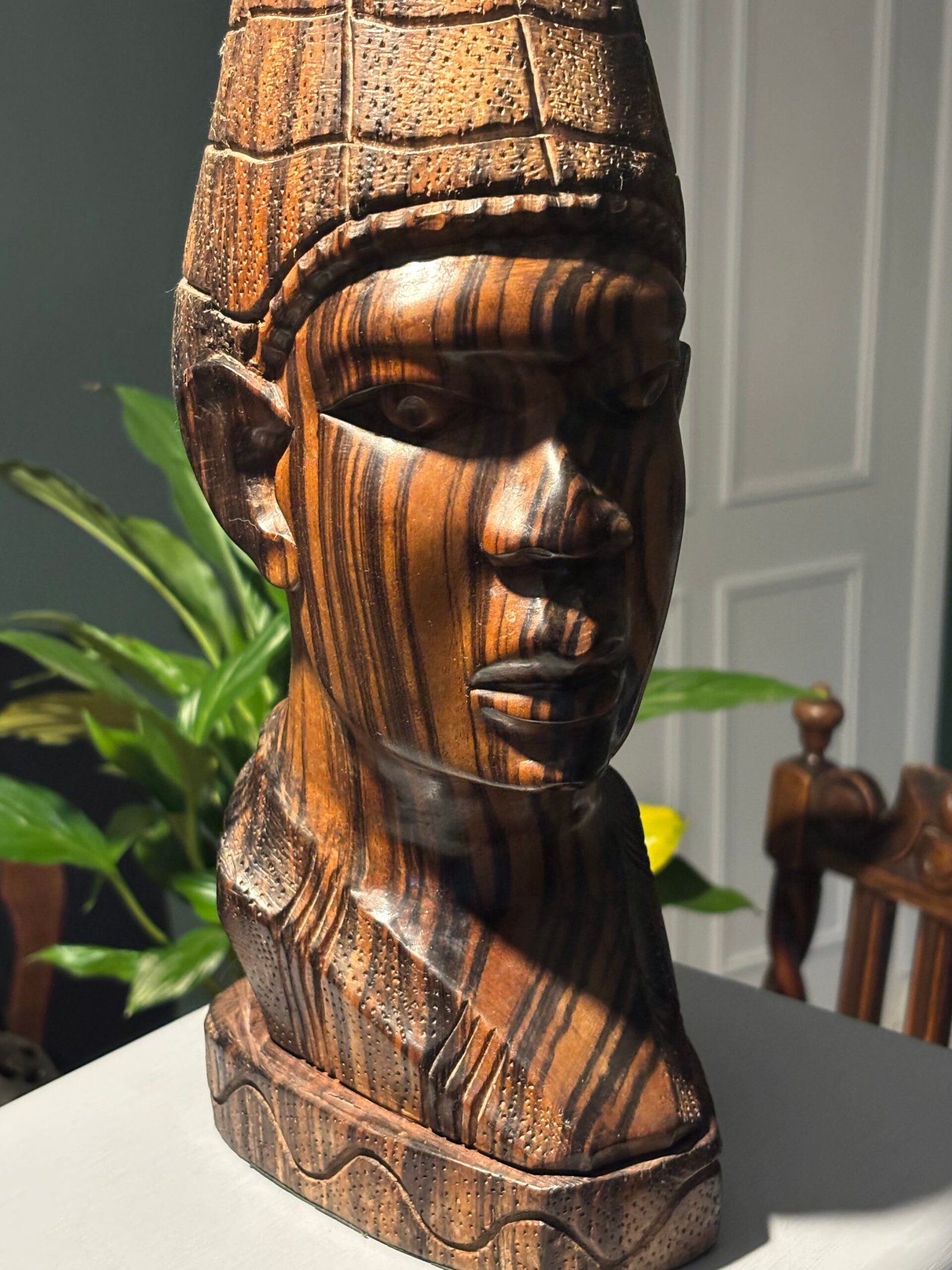 Vintage wooden hand-carved African wooden bust – sculpture, made from zebra wood.Availability: 1 in stock