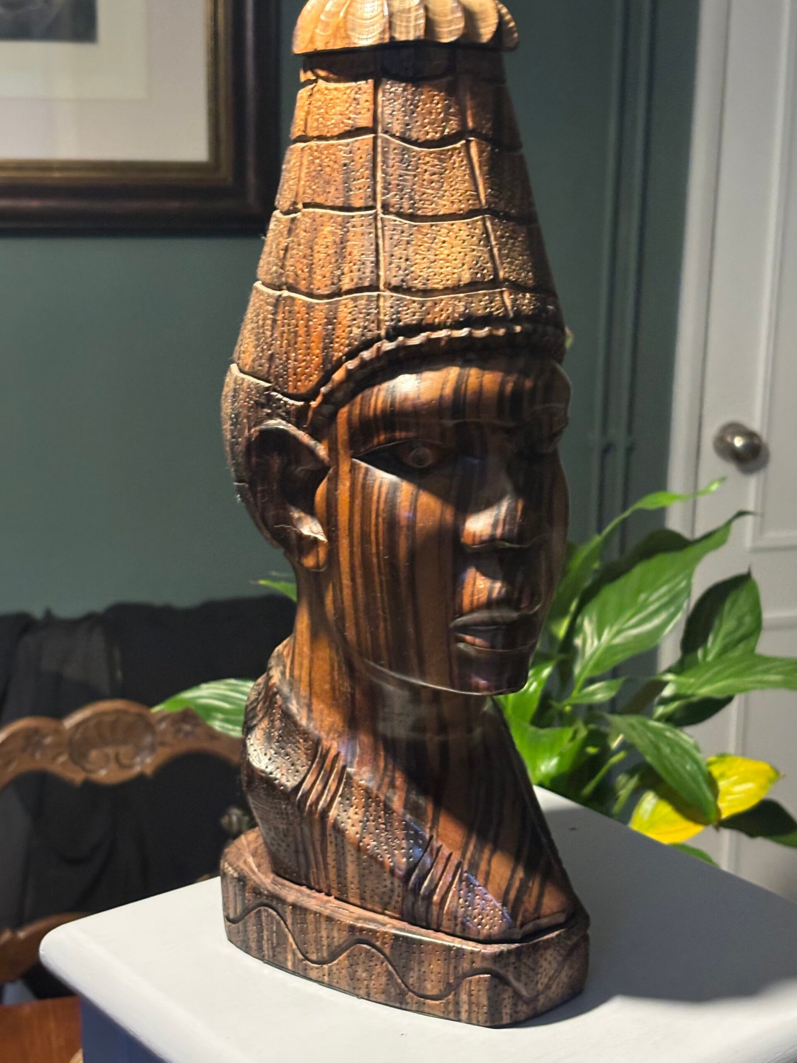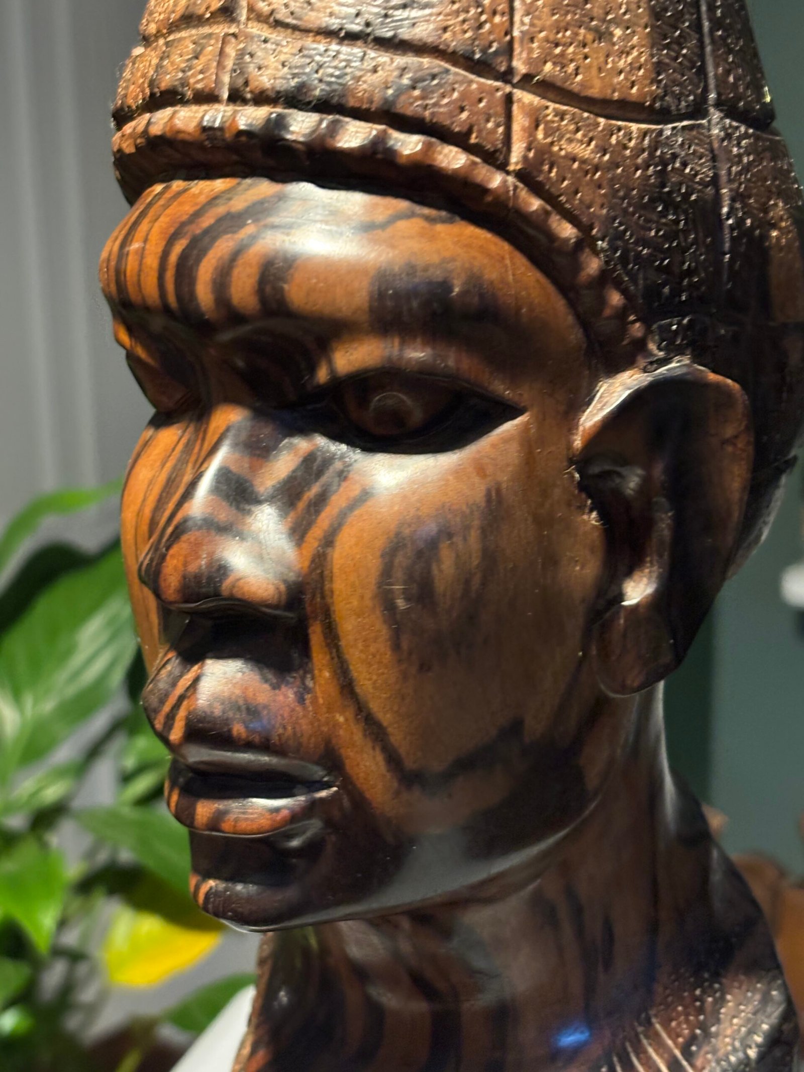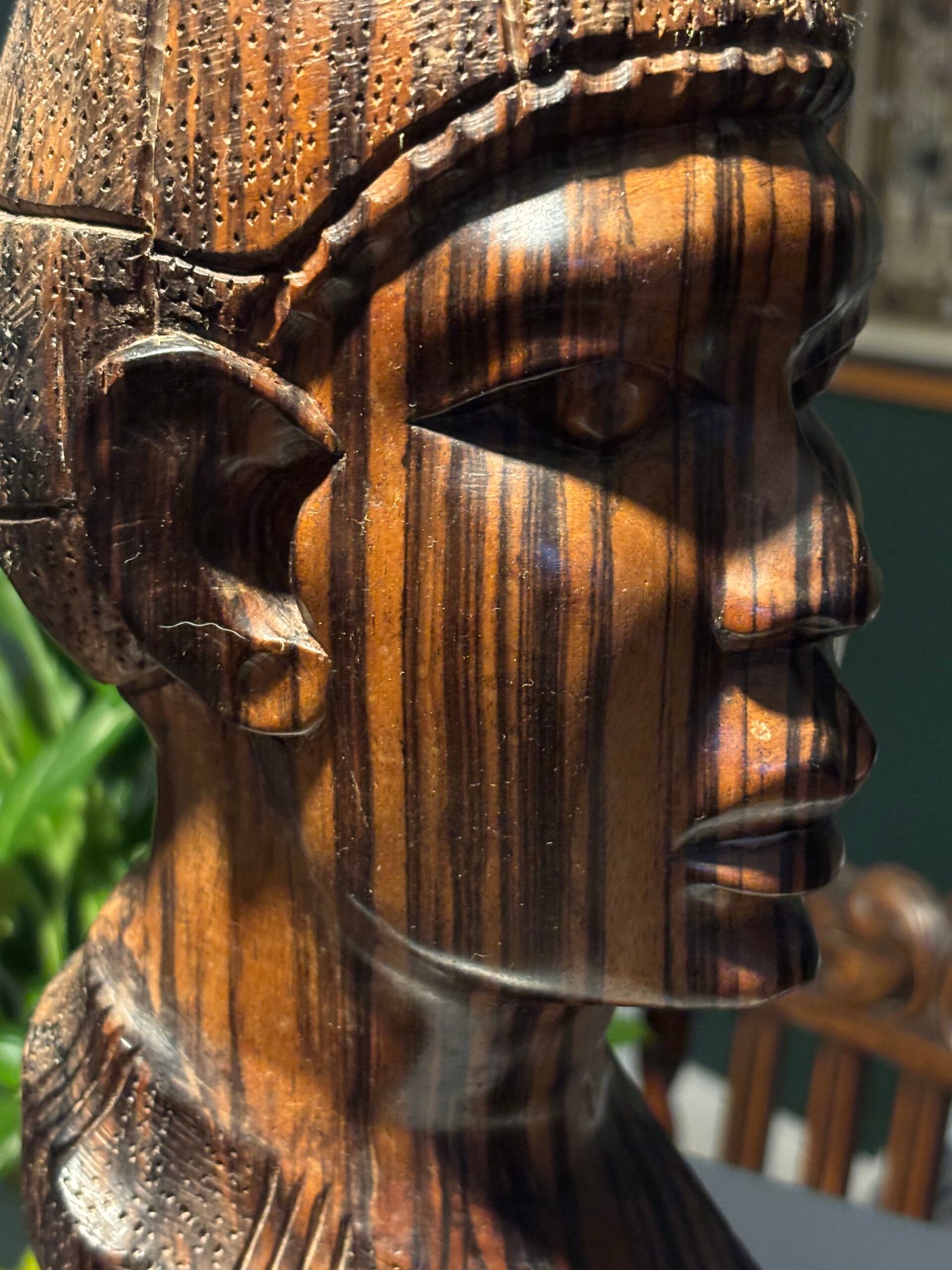 Vintage wooden hand-carved African wooden bust – sculpture, made from zebra wood.Availability: 1 in stock