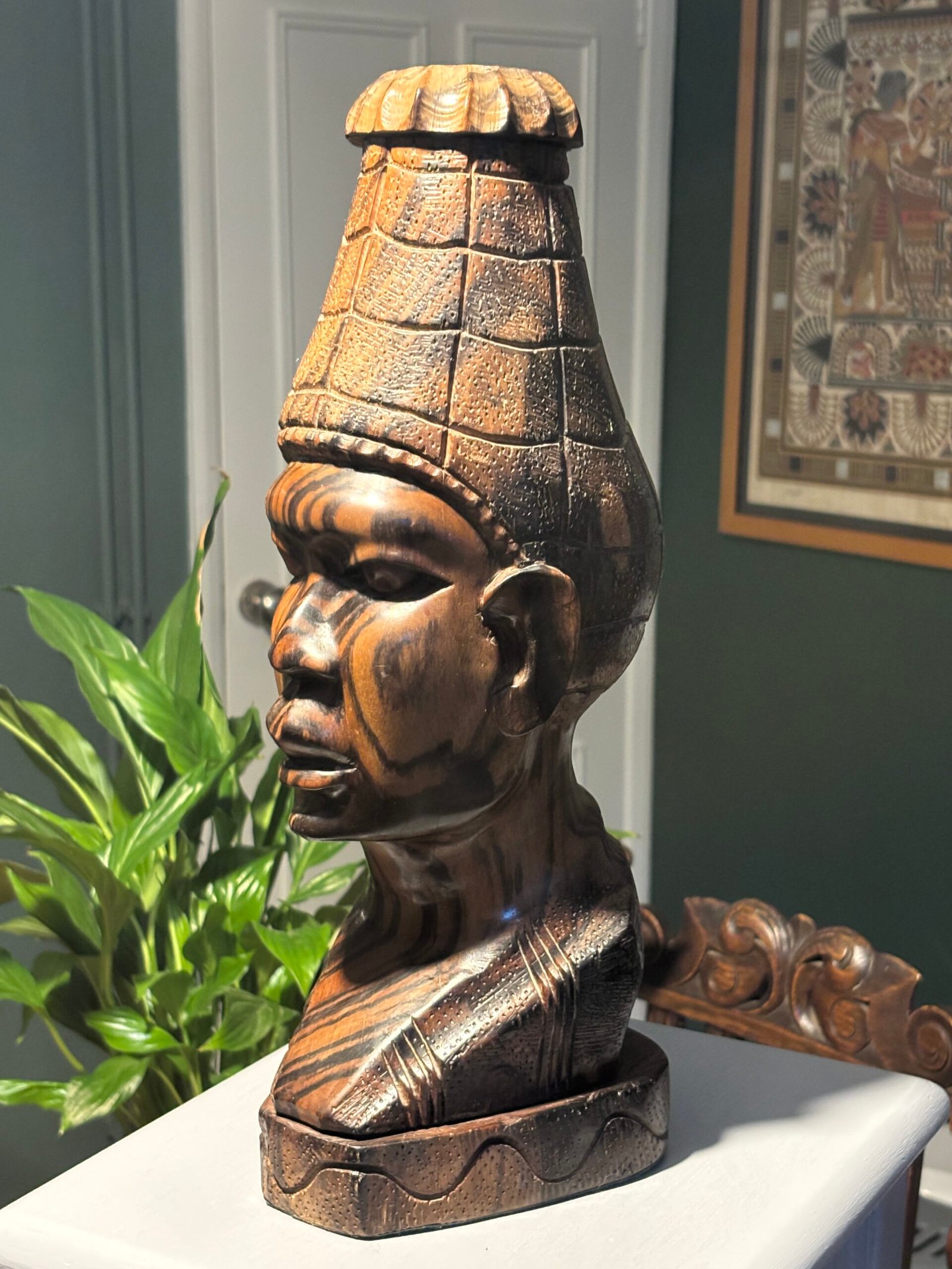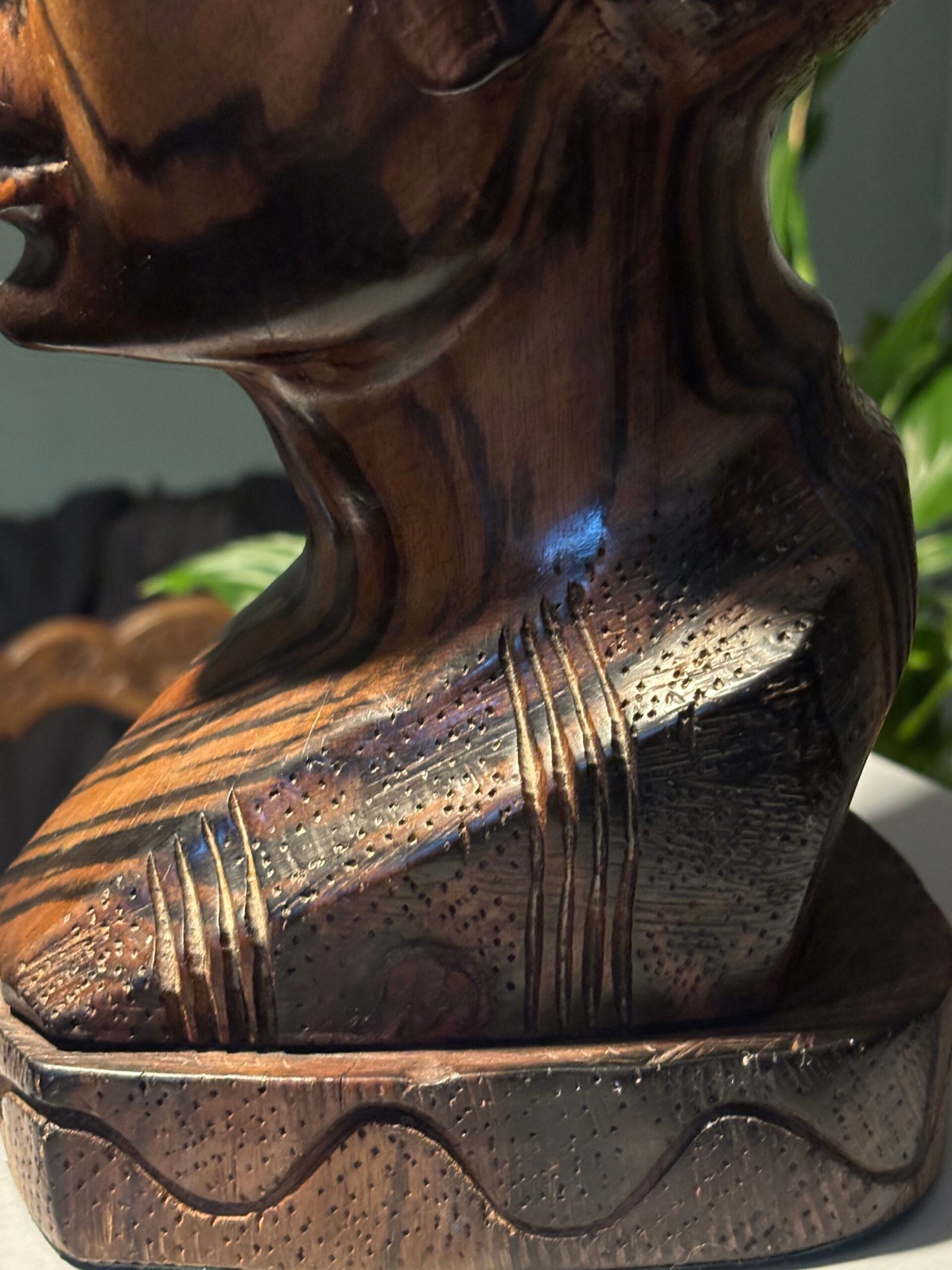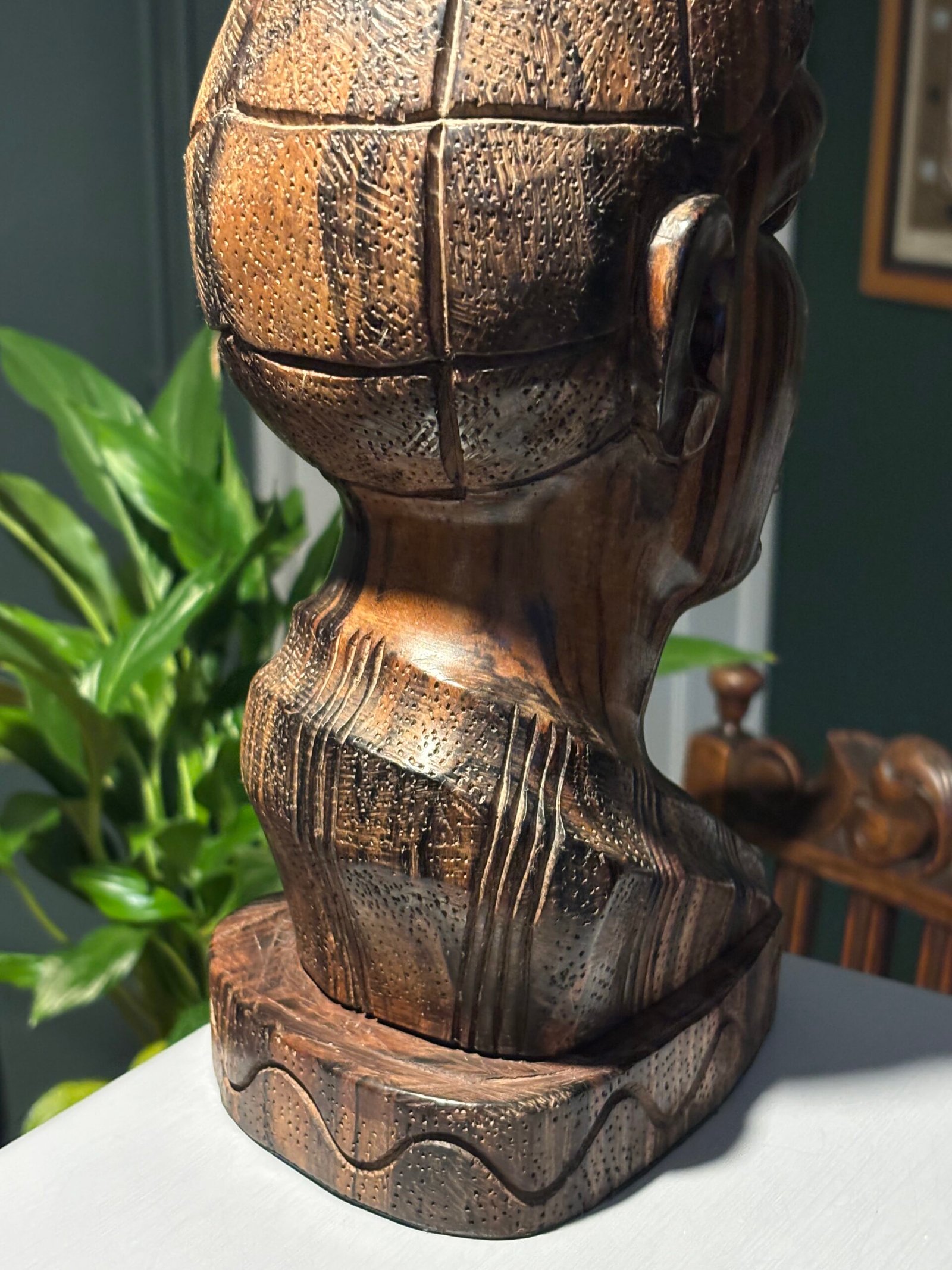 Vintage hand-carved African wooden bust / sculpture. Lovely piece of tribal art.